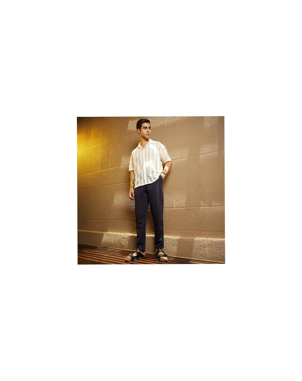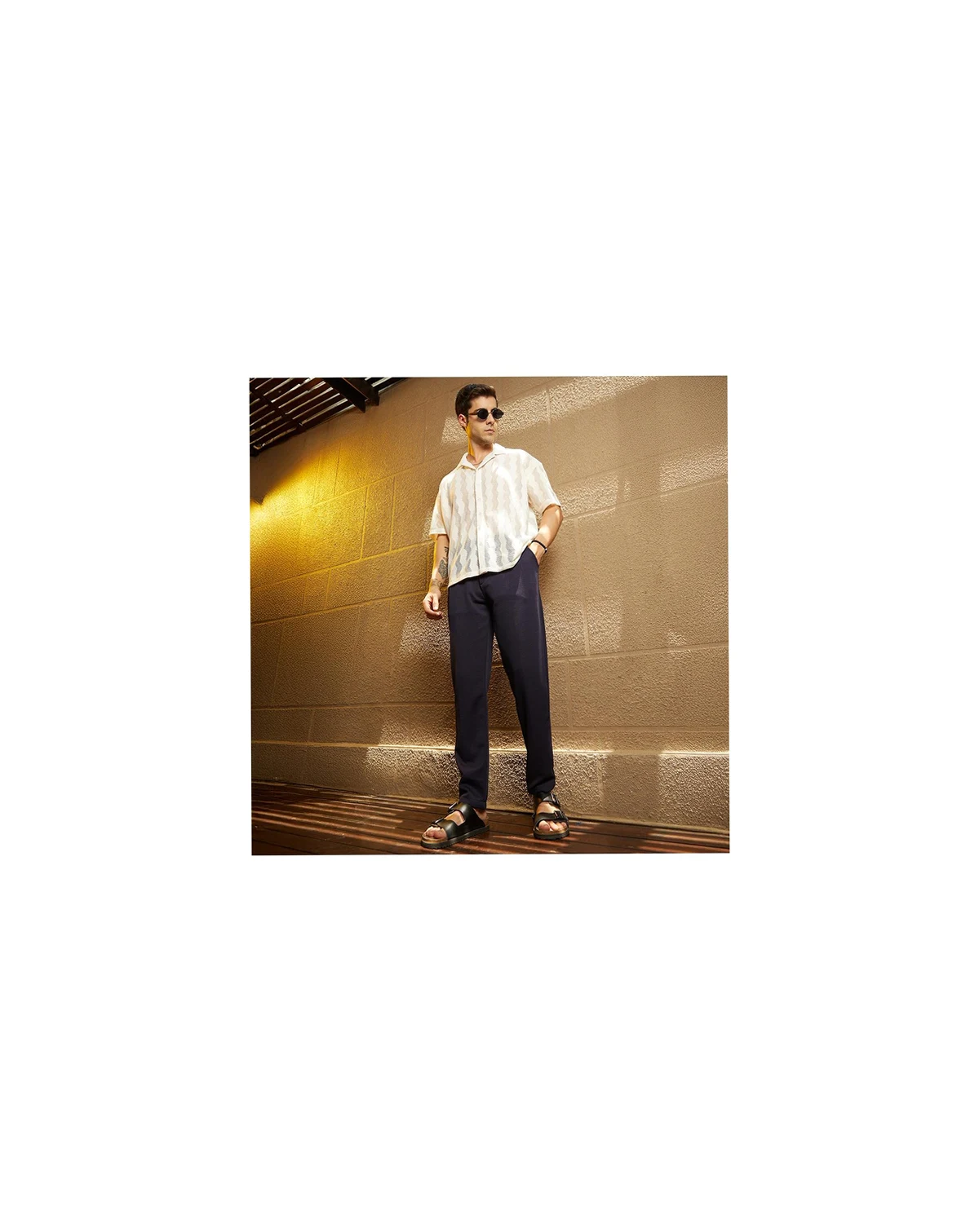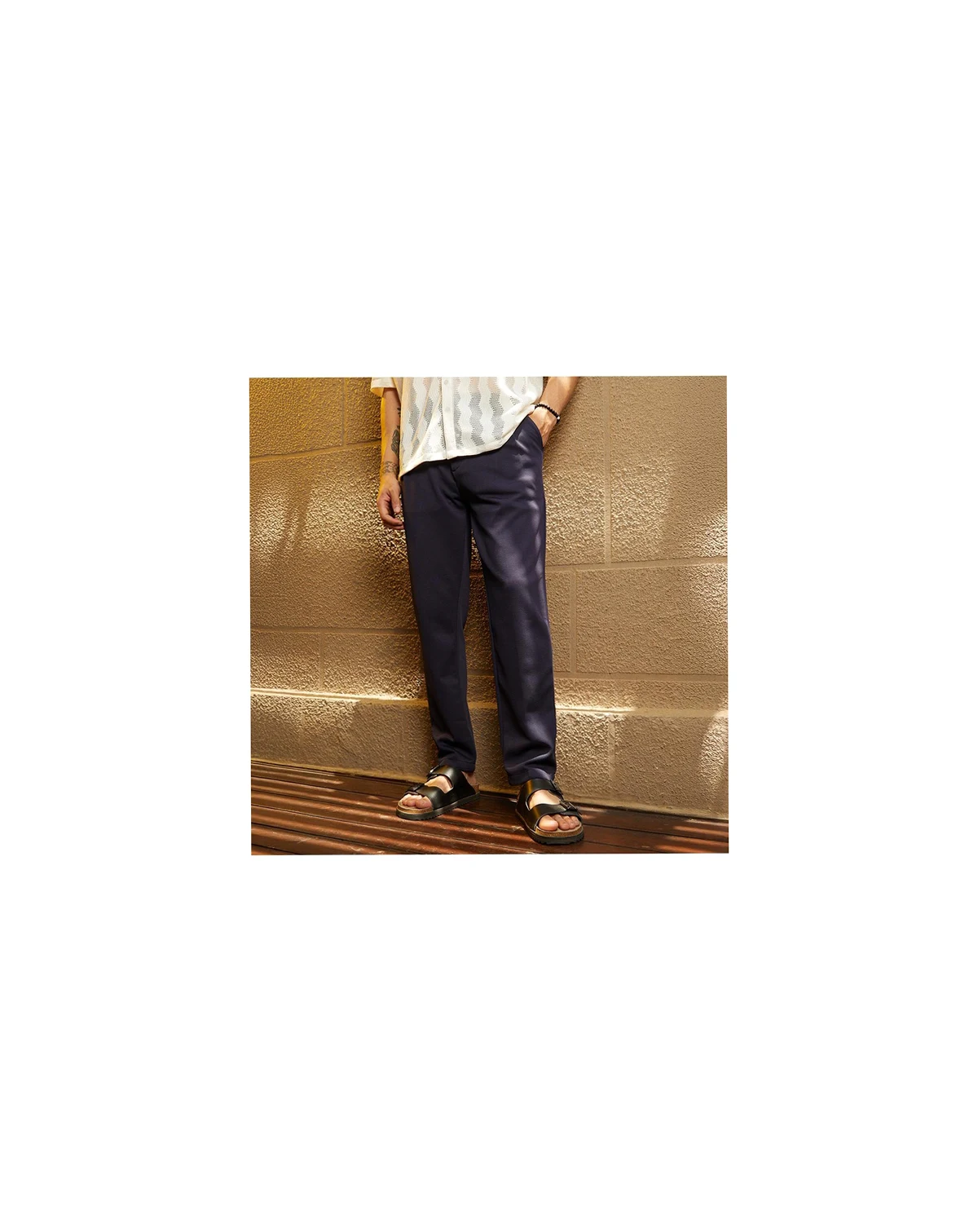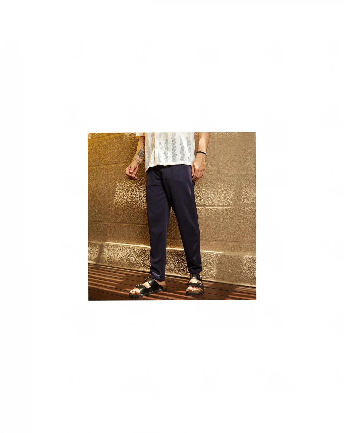 Men's Navy Blue Micro-Waffle Chino Trousers