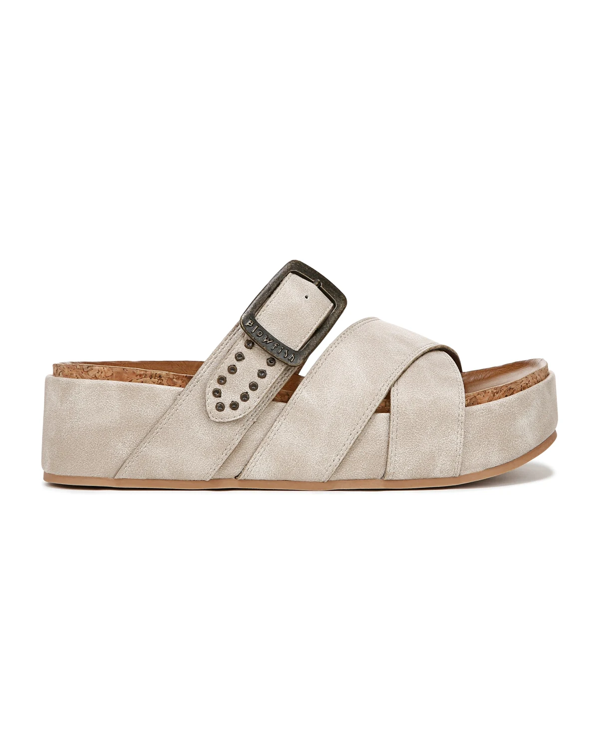 Amp up your slide style in the Iris Platform Sandal from Blowfish Malibu. It features crisscross straps and a strap with decorative buckle and studs, plus a covered platform sole. Faux-suede, faux-leather, or fabric upper. Slip on entry. Decorative buckle and stud detail. Covered platform. 1.5-inch platform heel.