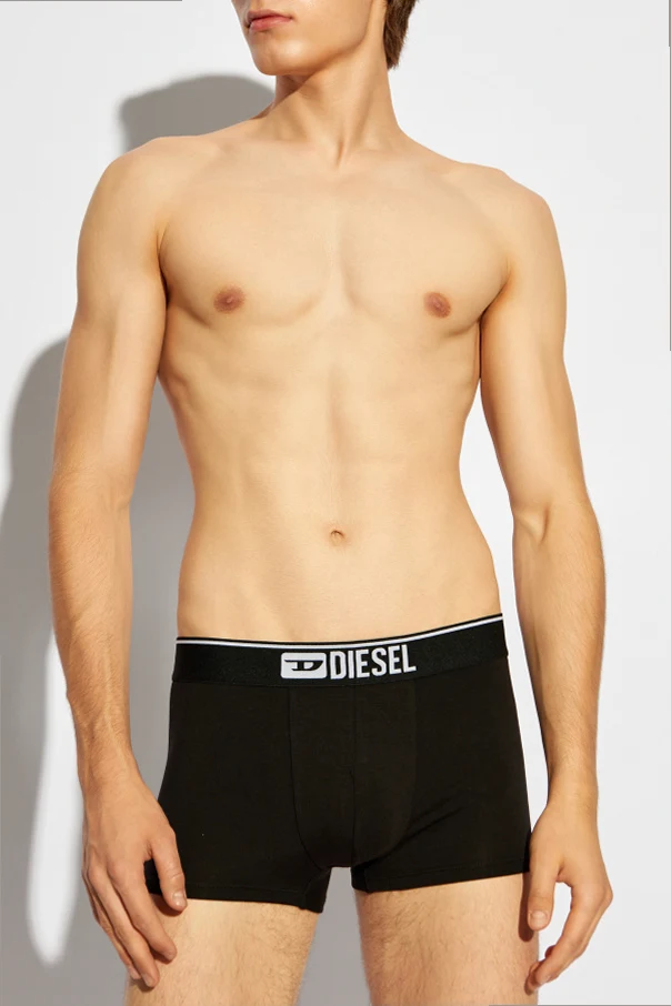 The hallmark of this collection is the distinct, broad waistband featuring the iconic Diesel logo in stark white against a black backdrop. This design element not only accentuates the boxer's sleek aesthetic but also serves as a testament to the quality and creativity inherent to the Diesel brand. Whether showcased in a stacked arrangement or worn with confidence, these boxer briefs exude a sense of luxury and attention to detail.