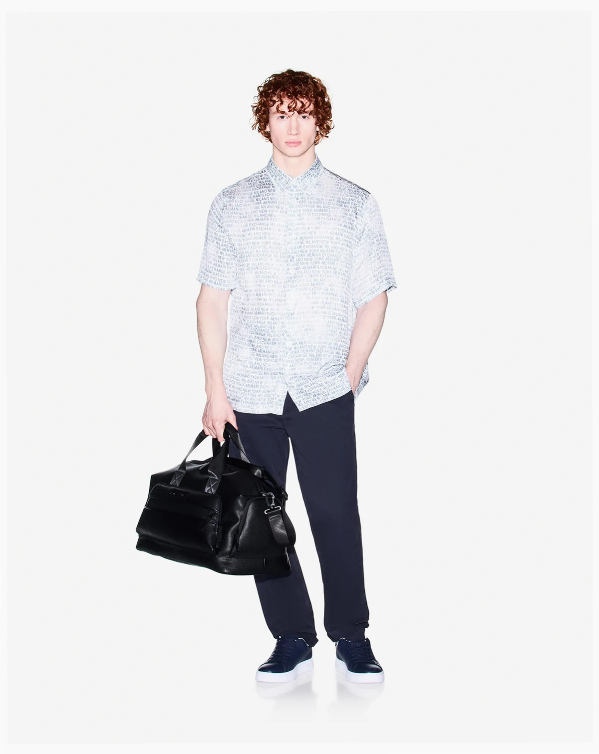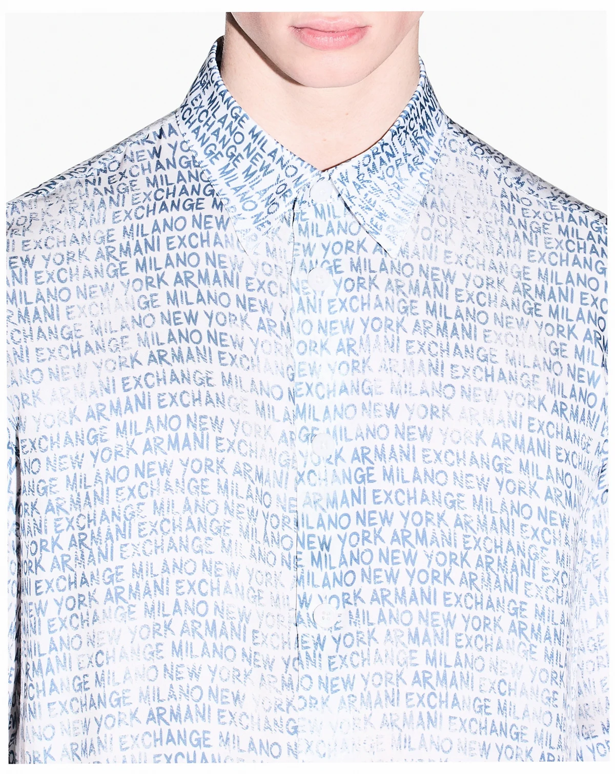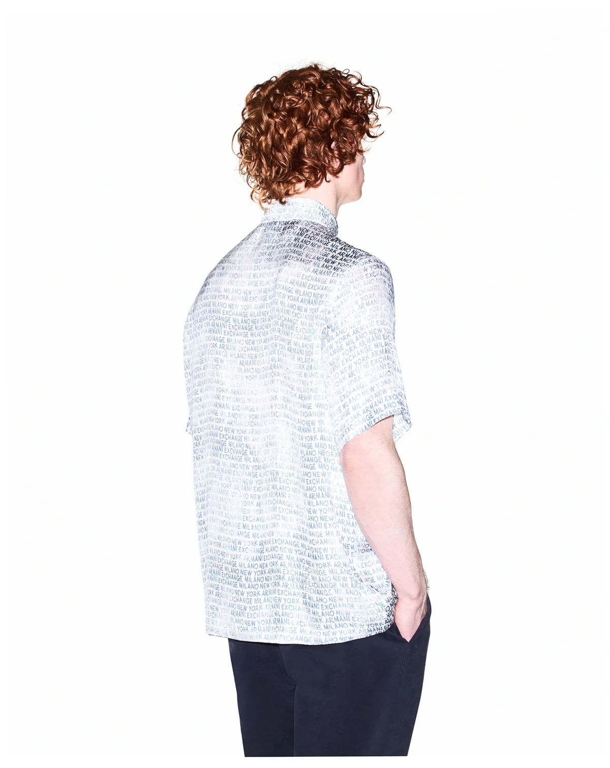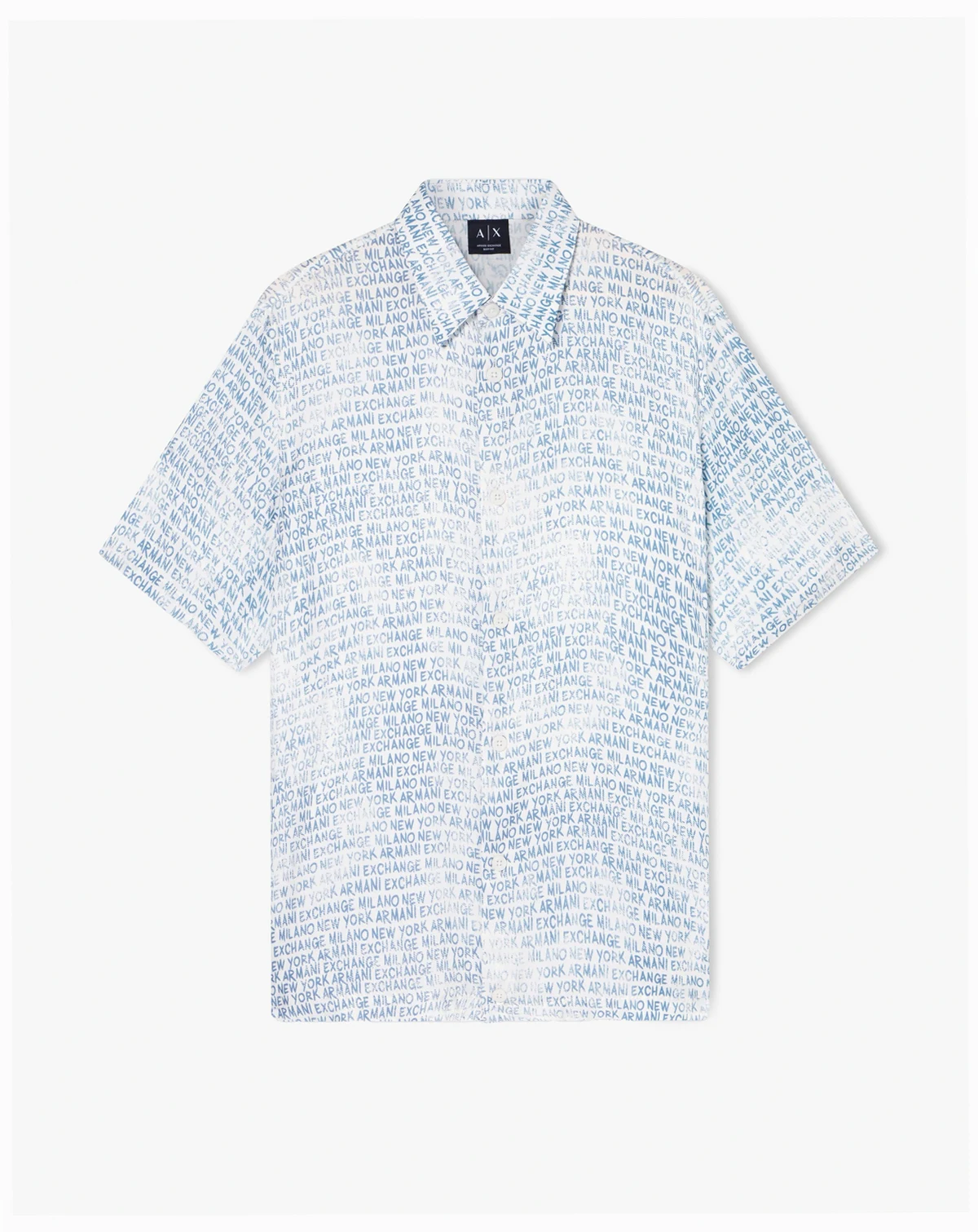 Make a bold statement with this Armani Exchange button-up shirt, featuring a bold print in a buttery soft fabric. With short sleeves and a classic collar, it's perfect for casual or semi-formal looks to take you from day to night.