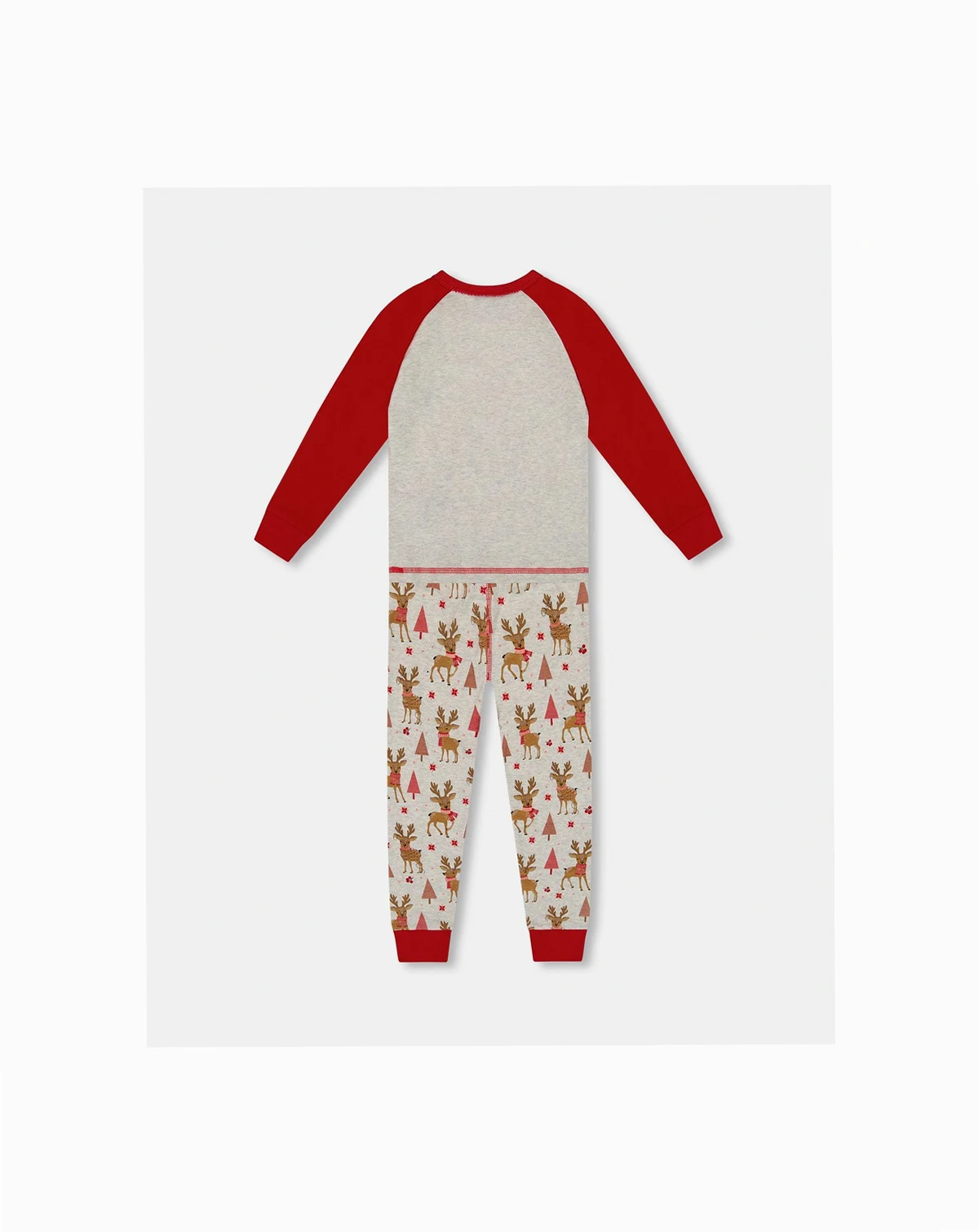 This cotton interlock sleepwear set makes every nighttime tuck-in and morning wake-up as adorable as can be! Perfect for sleeping and lounging, these ultra-soft pajamas feature a long raglan sleeve top with a crew neckline, an elastic waist pant with solid cuffs, and a charming reindeer and tree print.