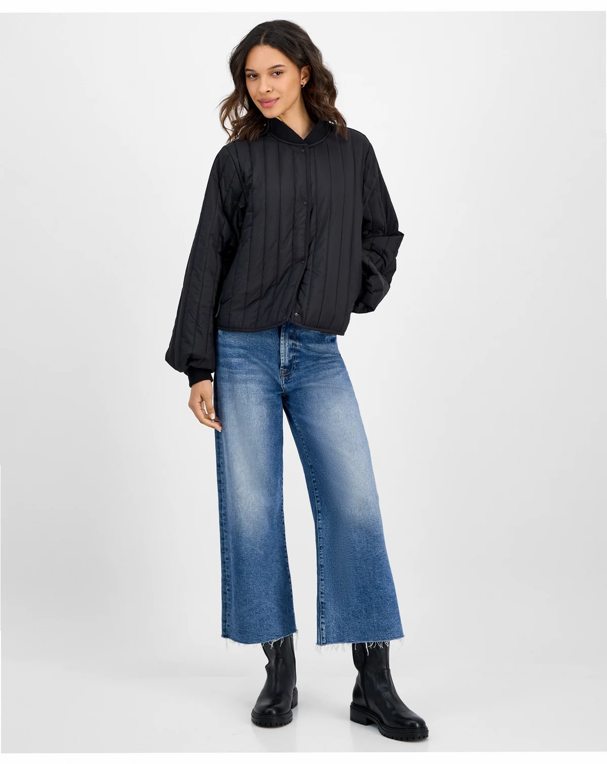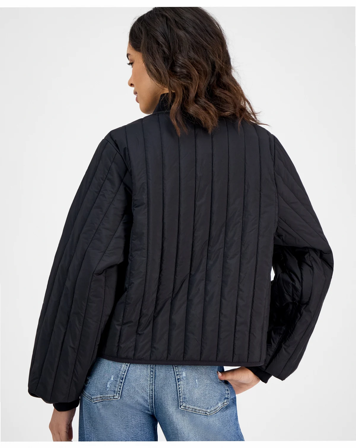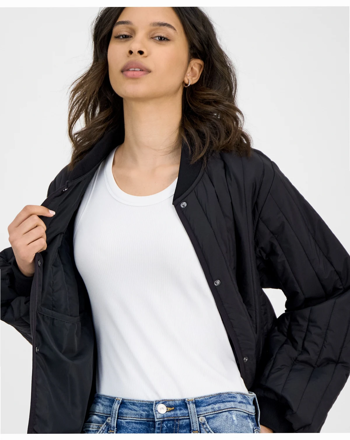 Take on a cozy, stylish feel in this Rains bomber jacket designed with soft knit trim along the collar and cuffs.