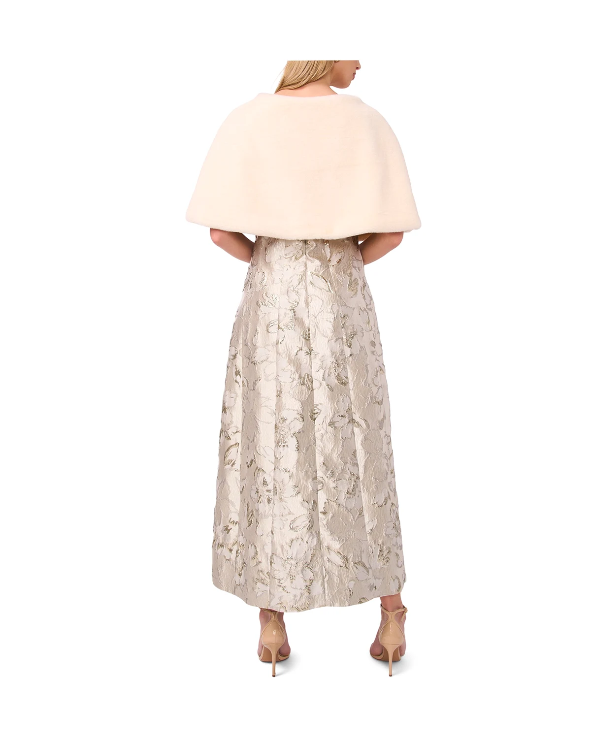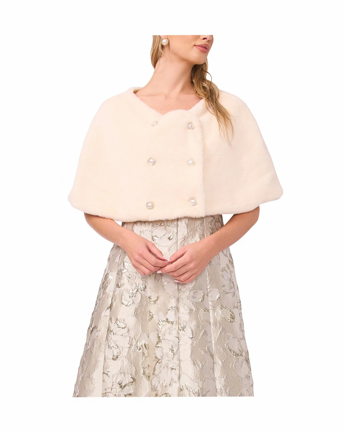 Make a sophisticated statement with this double-breasted cape jacket from MSK, featuring an elegant round neckline. Front button closure offers a sleek and fashionable alternative to traditional outerwear.