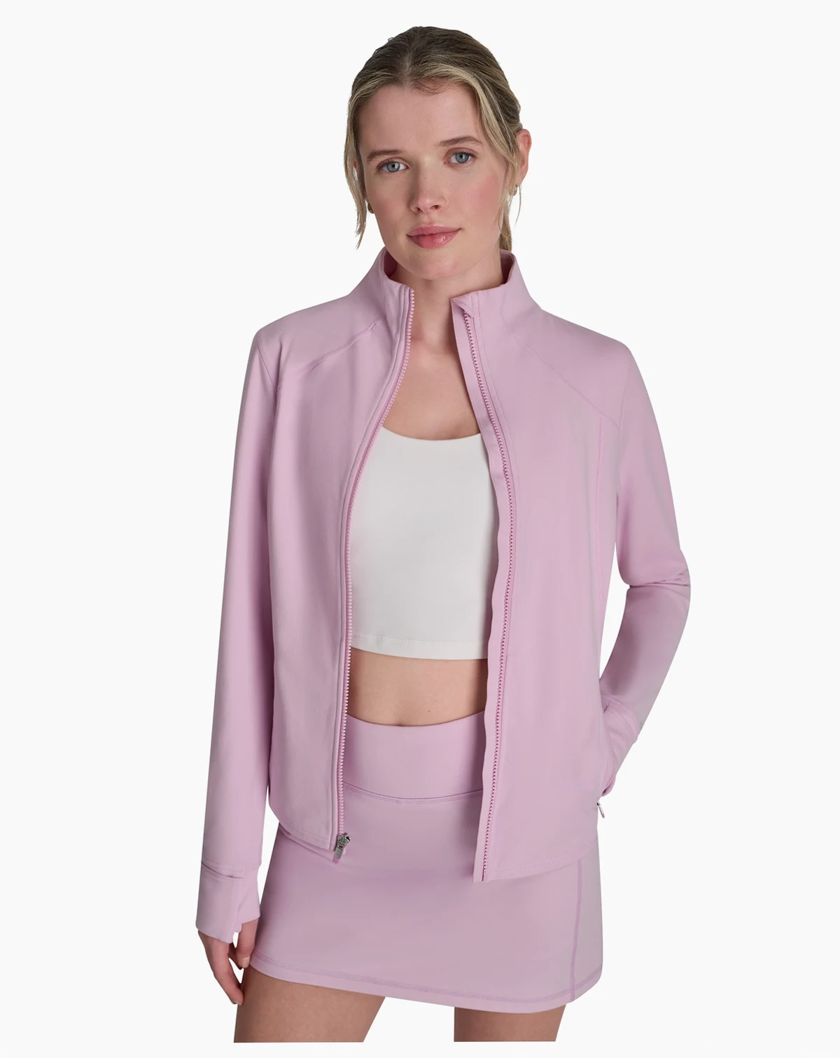 Stay sleek and active with this DKNY Sport jacket, featuring a modern funnel neck and a convenient zipper closure. Designed in a regular fit, it offers comfortable, versatile wear for layering or on-the-go style.