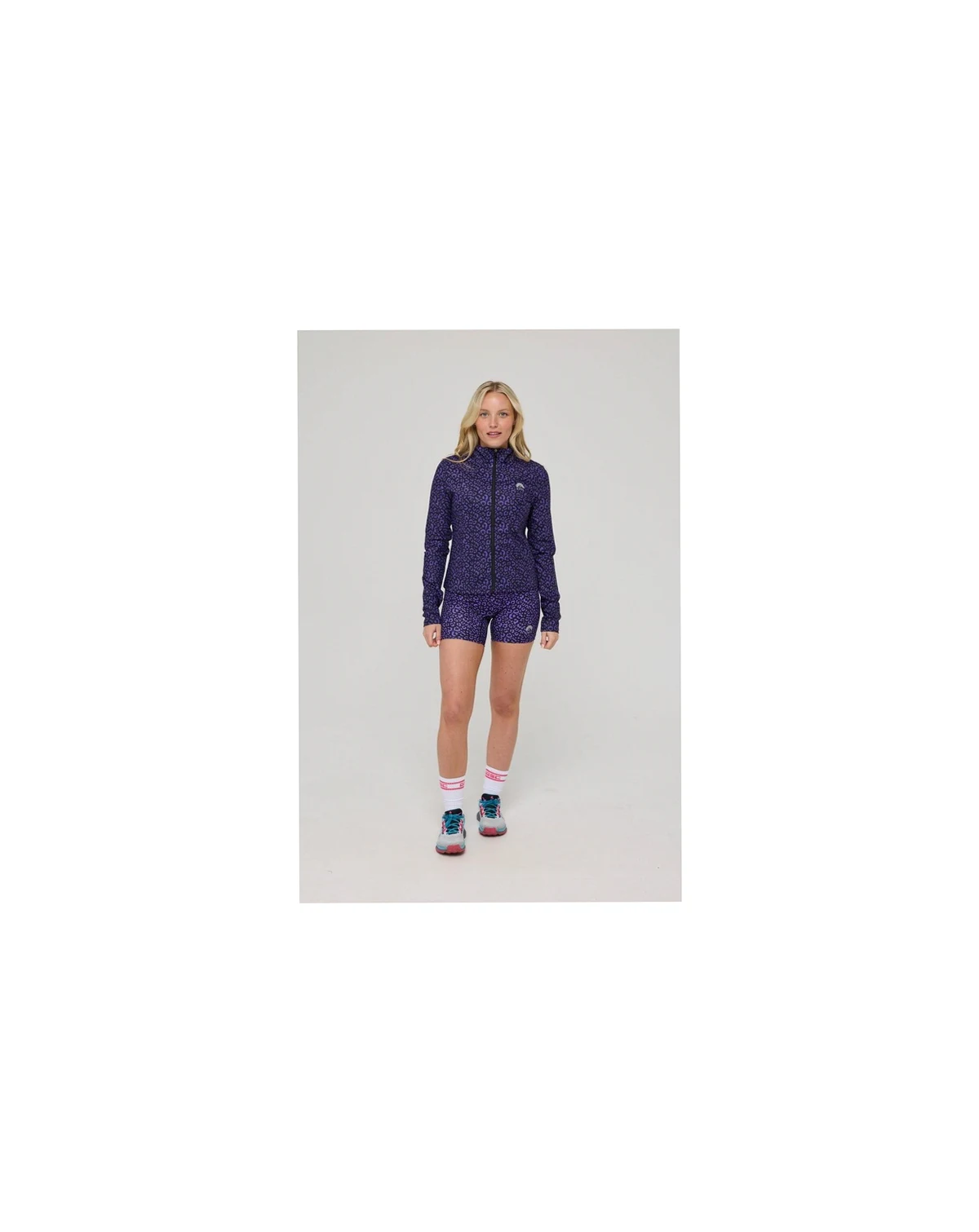 OOSC Infinite Cropped Zip Tracktop offers breathable, sweat-wicking comfort with four-way stretch and a soft lining. Its modern neckline and contouring flatter your shape. Quick-drying with reflective logos, perfect for layering over activewear.