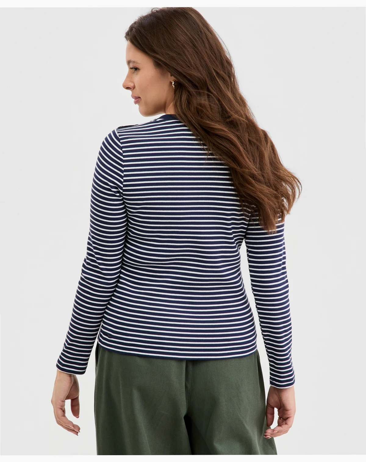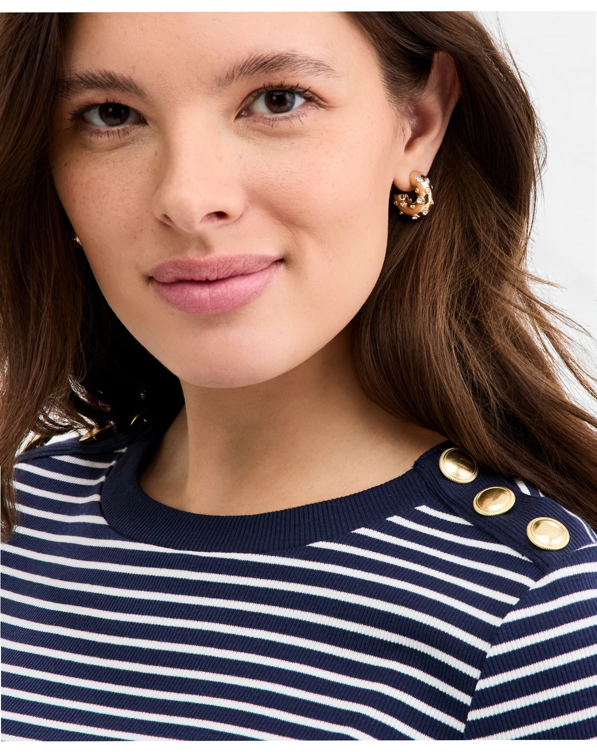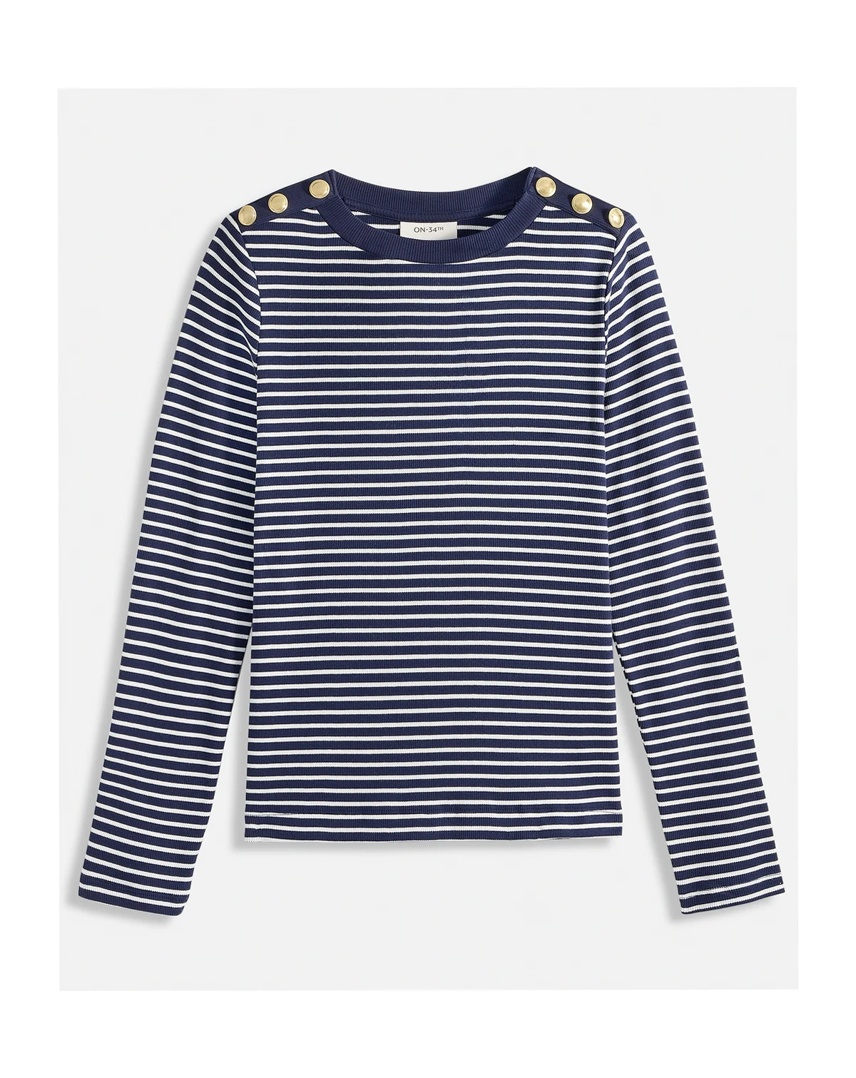 Bring a cool, nautical vibe to your everyday wardrobe with this long-sleeve top from On 34th. ABOUT THE BRAND: On 34th was designed for and with women like you. Made for your body, your style, and your truth. As your wardrobe's BFF, these mix-and-match pieces work with everything in your closet.