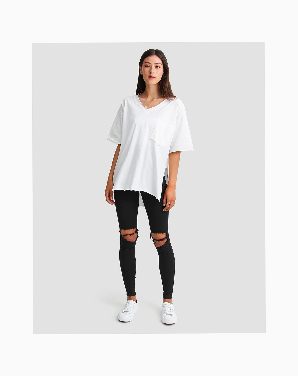 Upgrade your basic tee for the Brave Soul Long Sleeve T-Shirt for a streetwear inspired look. With high slits and a raw hem, tie up the front for some extra shape and skin while still embracing a high-low hem.