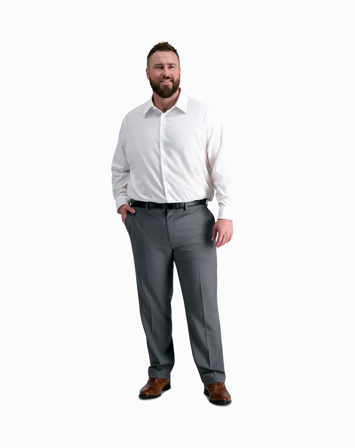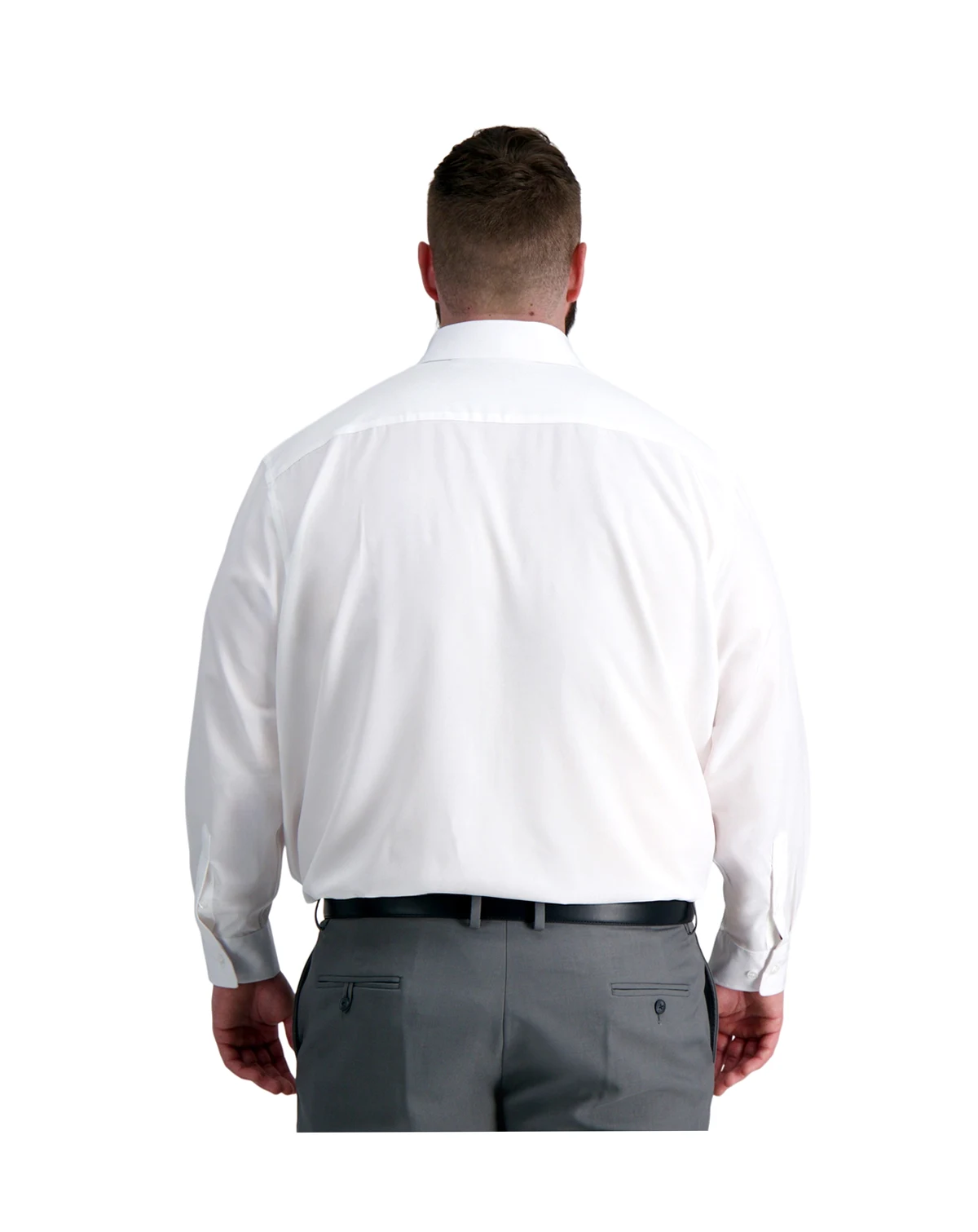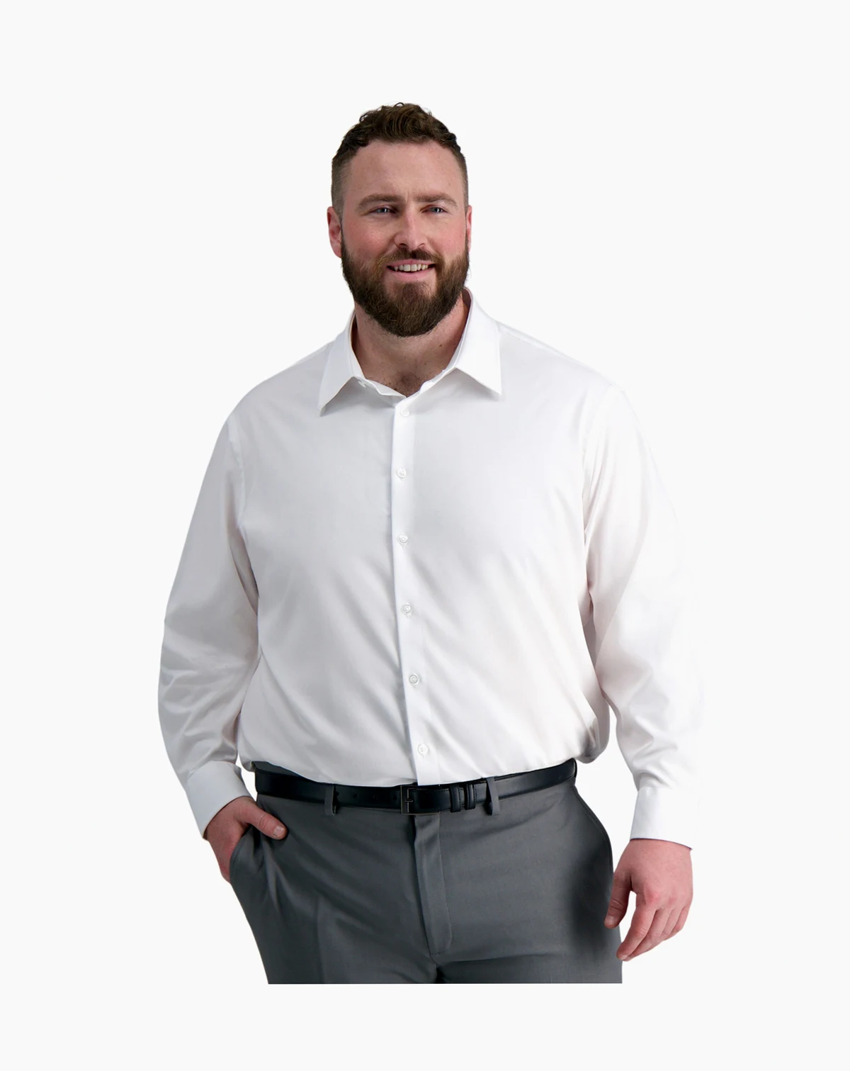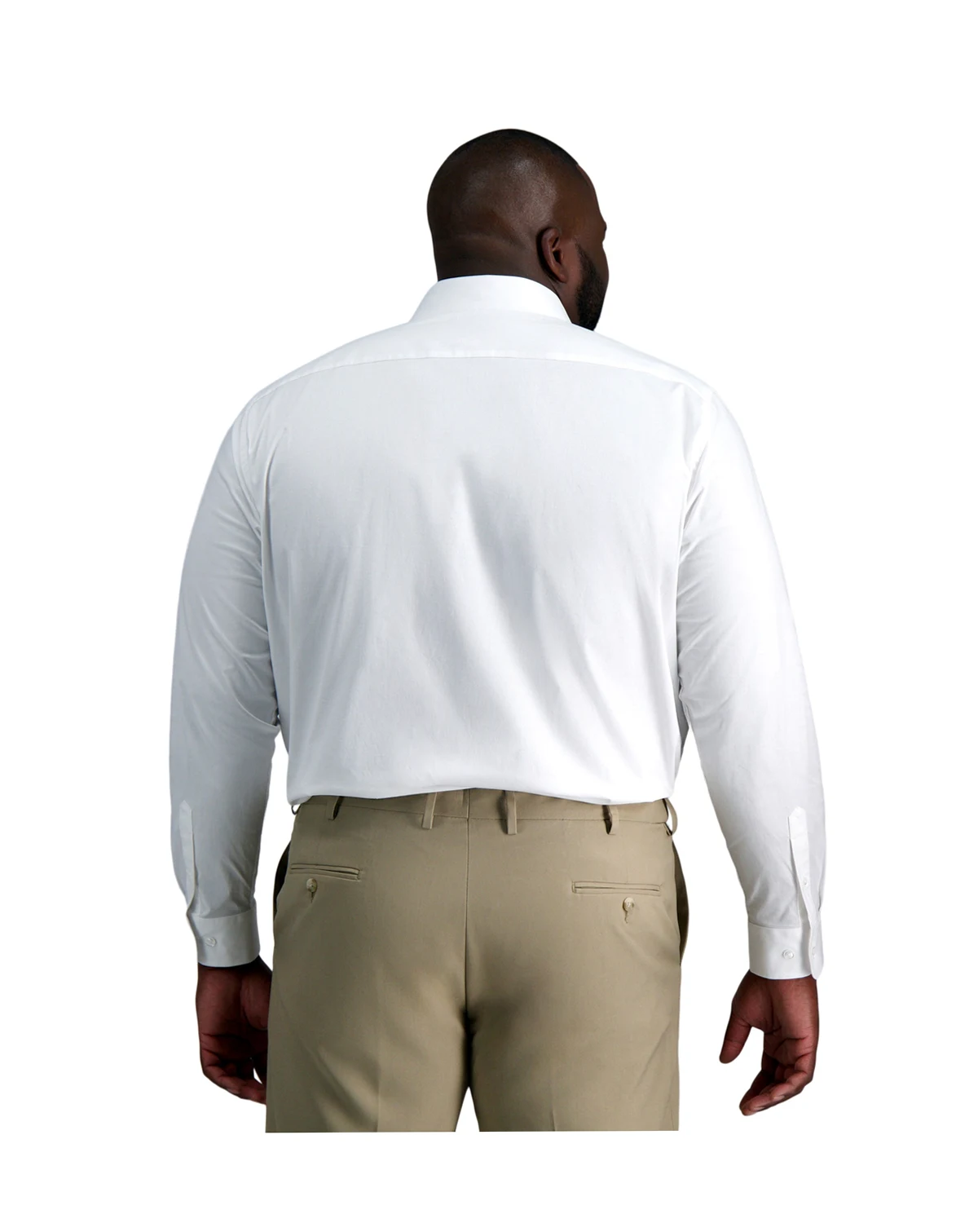 Fashioned with a roomy classic fit, Haggar's big & tall dress shirt seamlessly intertwines elegance and comfort, featuring innovative stretch technology and a wrinkle-resistant fabric to keep you looking polished all day long.