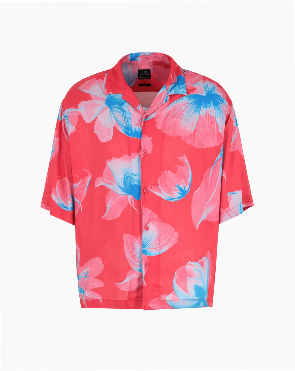 Luxuriate in the roominess of breezy, boxy-fit design when you add this spread-collar button-down from Armani Exchange to your arsenal of warm-weather looks.