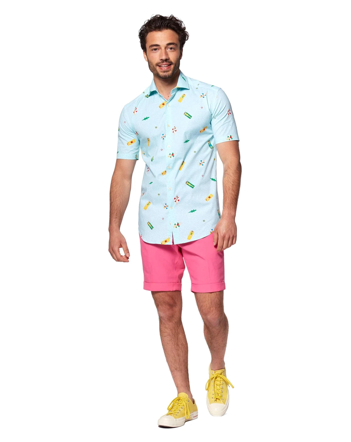 No wardrobe is complete without an OppoSuits button up shirt. This colorful shirt has a very stylish fit and is ideal to combine with all kinds of clothes - for example a formal jacket, a funny suit from OppoSuits, a Halloween costume or just casual jeans.
