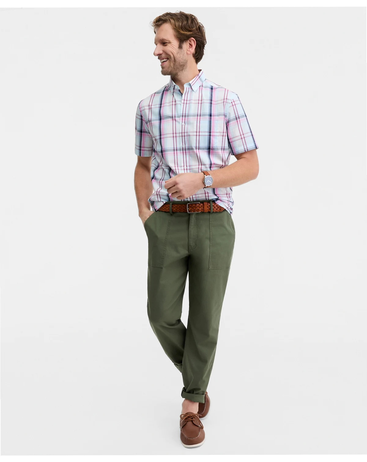 Men's Ian Plaid Poplin Short-Sleeve Shirt, Macy's Exclusive