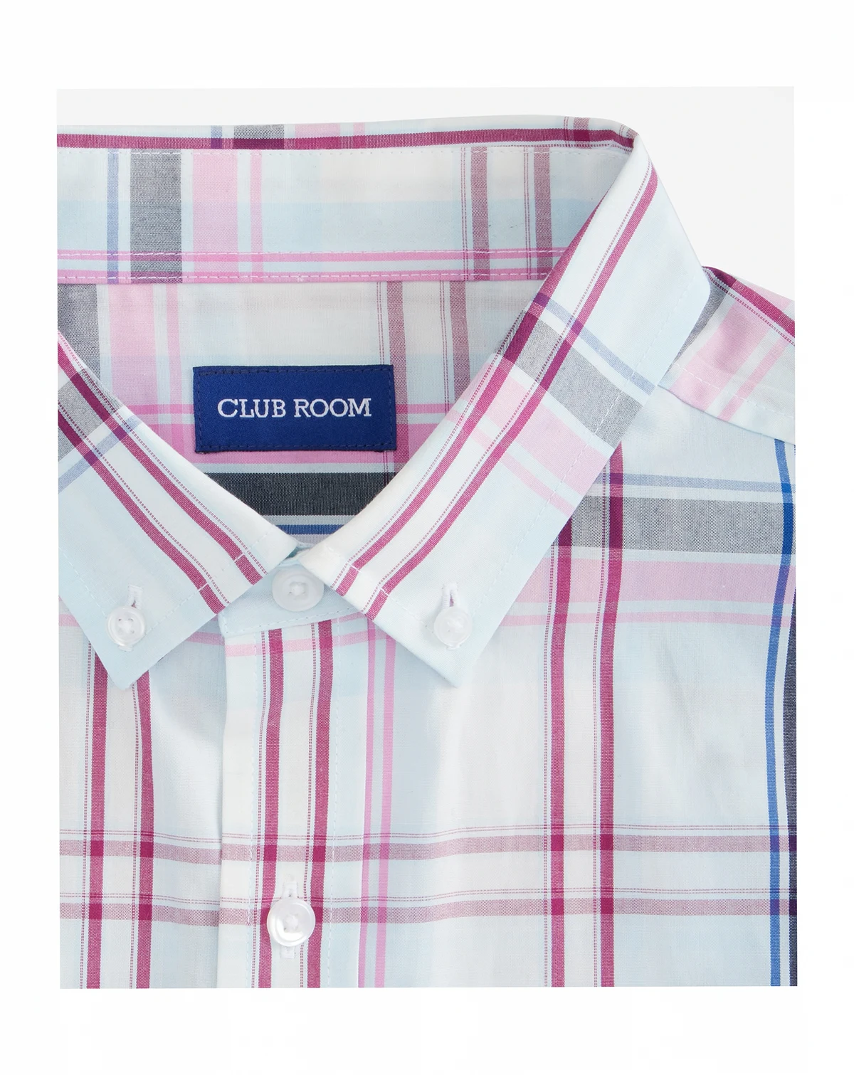 Vibrant notes energize this look from Club Room, an all-cotton poplin shirt in updated plaid.