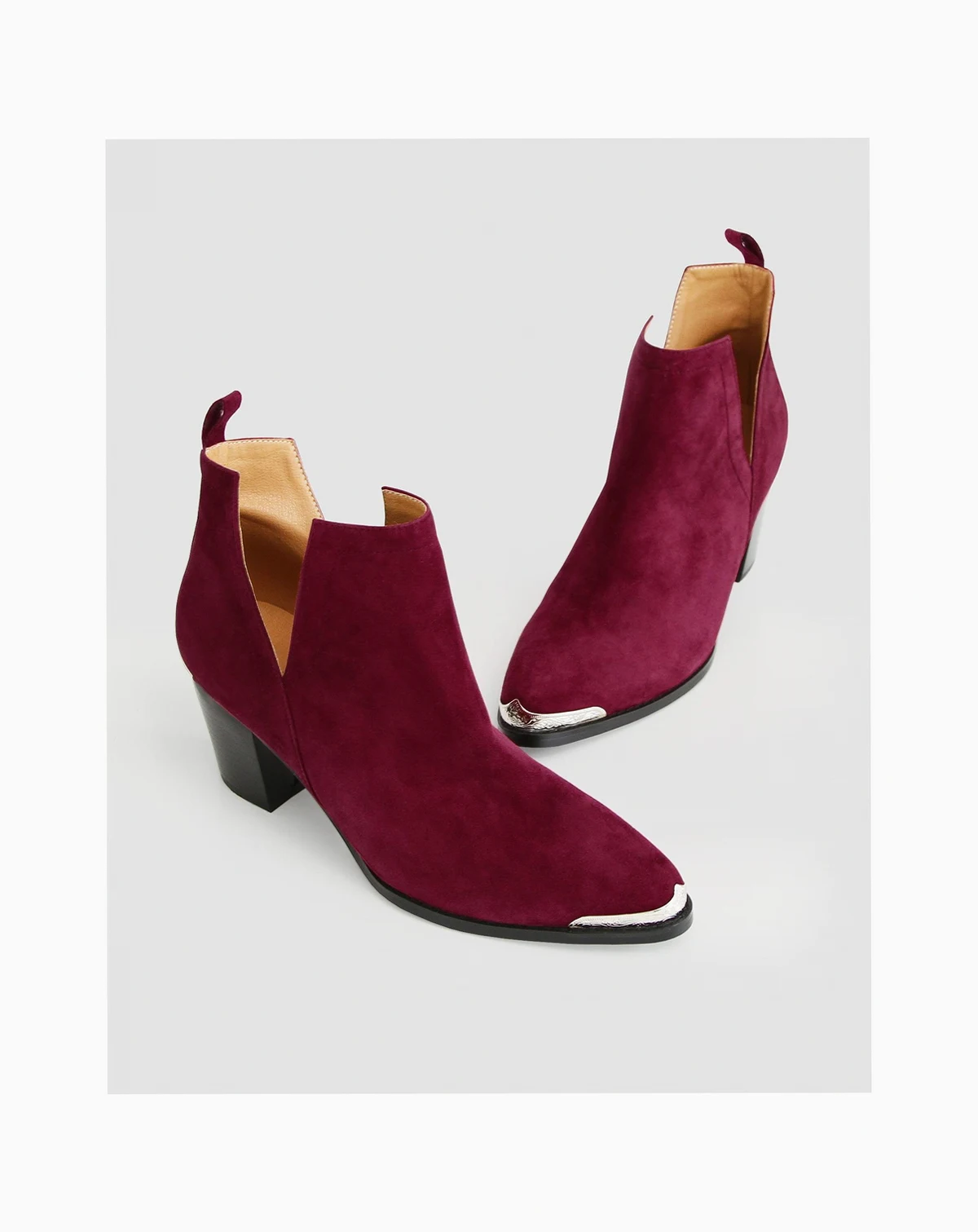 An etched metal capped heel and toe adds a dose of Western styling to the Austin Suede Ankle Boot. Grounded by a 7cm block heel, the cut-out silhouette and luxe suede leather modernizes the classic western features and creates a stylish addition to any outfit.