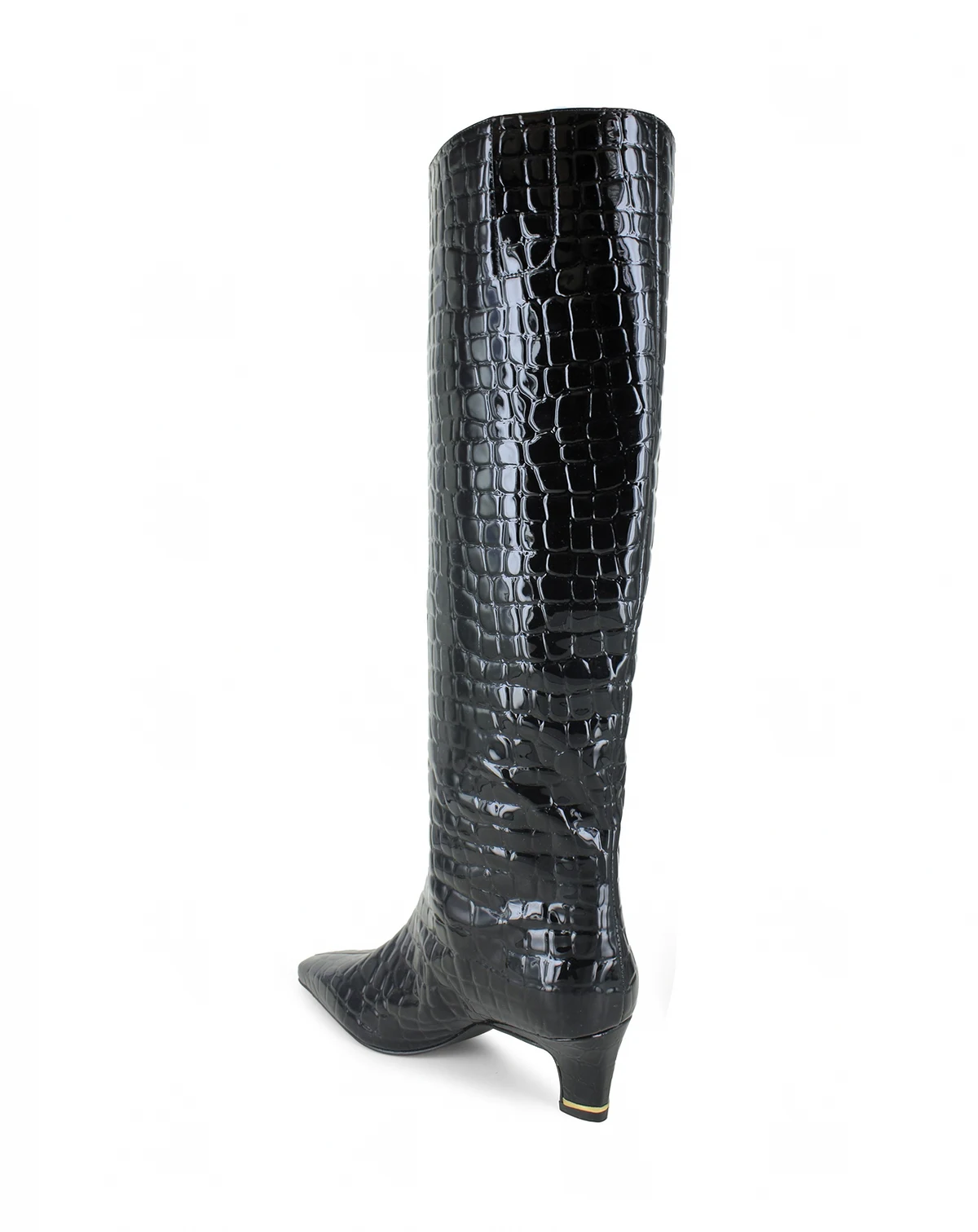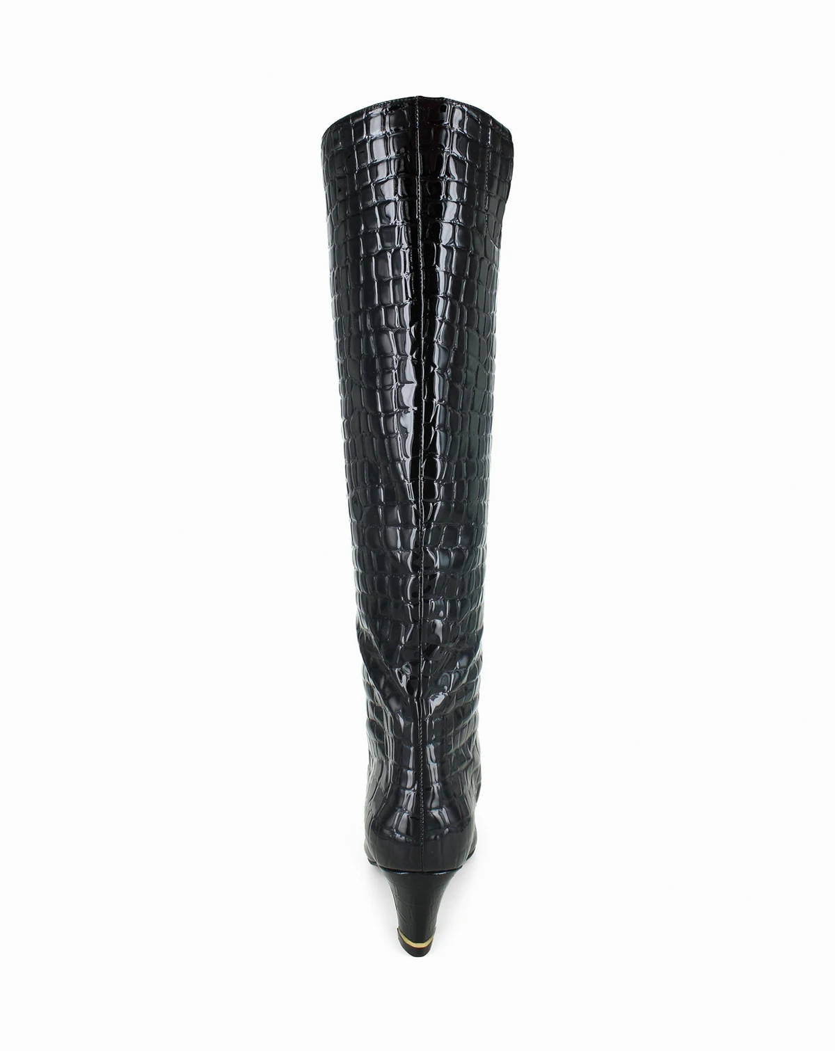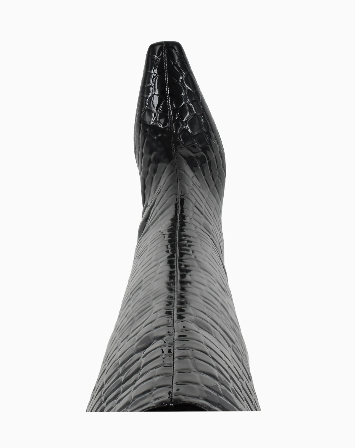 Command attention with every step in these Rubia Tall Boot by Kenneth Cole New York. Featuring a bold croco-embossed finish, a sharp snip toe, and a sculpted heel, this knee-high silhouette strikes the perfect balance between fierce and refined-an instant icon for elevated style.