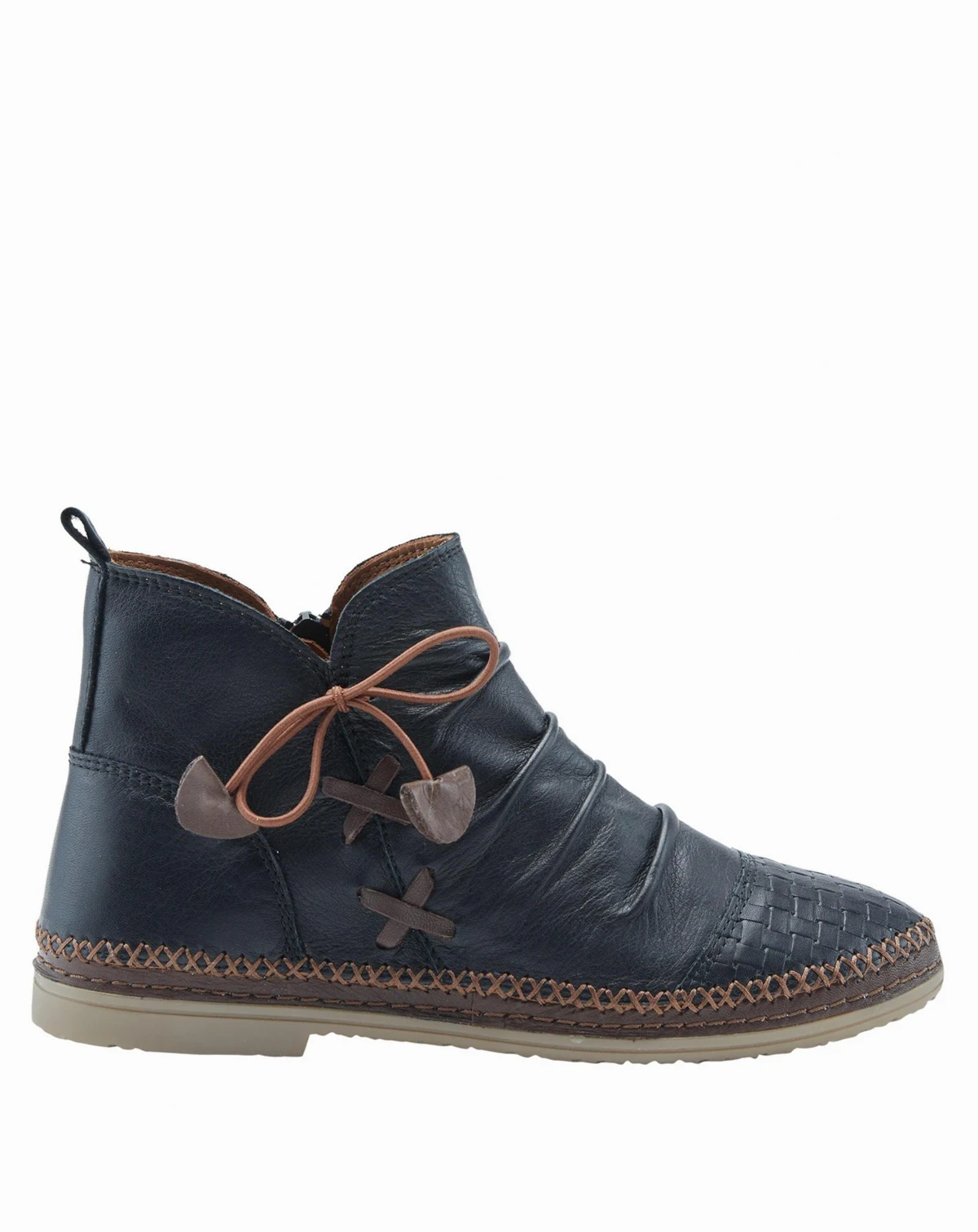 Elevate your everyday footwear with the handcrafted flair of the Spring Step Pomeroy bootie. Made from ultra-soft leather, this stylish boot features a handwoven basketweave toe, decorative laces, and a low-profile heel for relaxed sophistication. A cushioned insole ensures comfort with every step, while the flexible outsole provides freedom of movement. Ideal for casual wear or weekend looks, Pomeroy is both boho-chic and endlessly wearable.