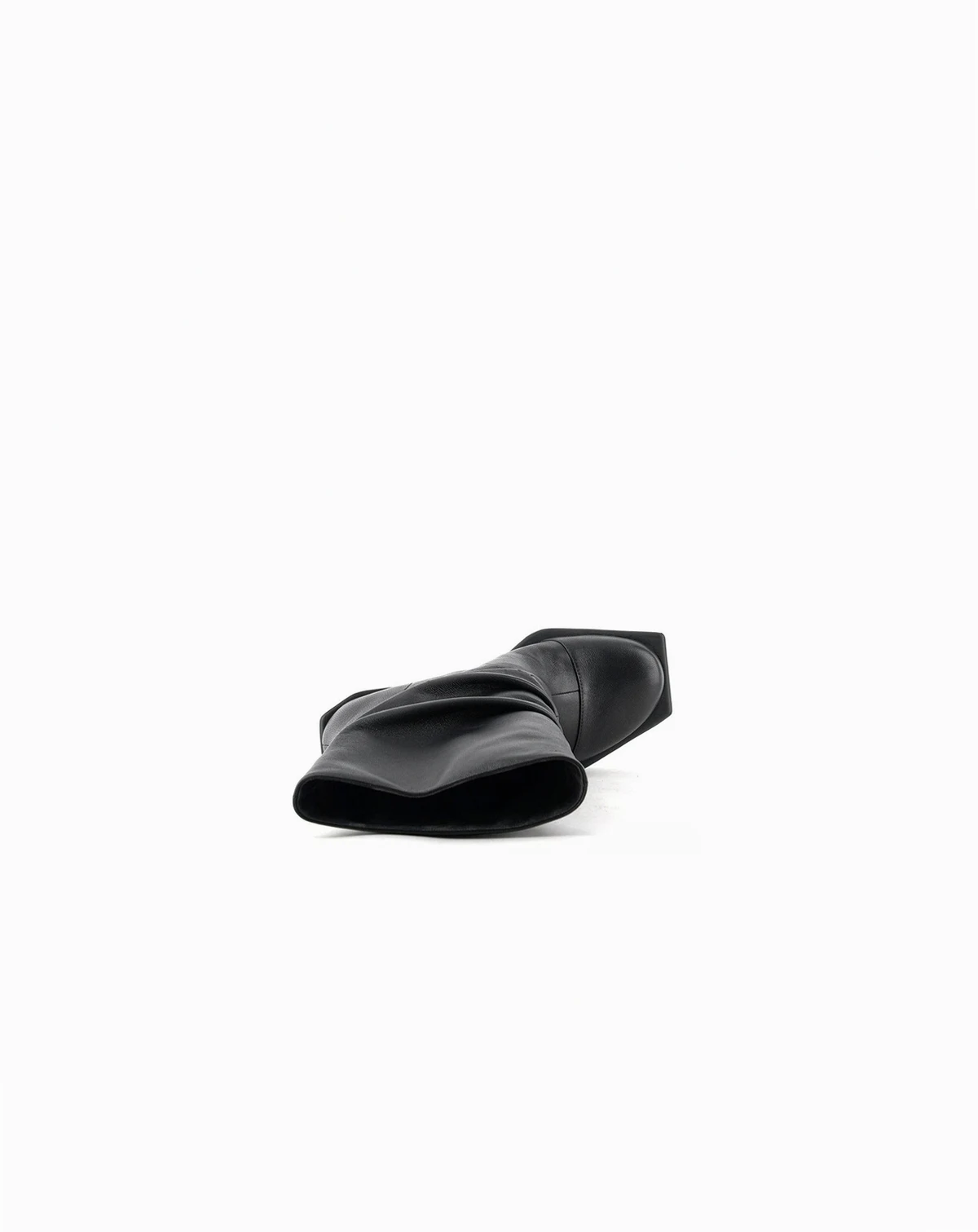 The Boulder Slouch Boot is a pull-on bootie with a striking wedge inspired by the rugged allure of rock-climbing walls. It features a relaxed, slouchy leather upper that contrasts with its bold, geometric sole.