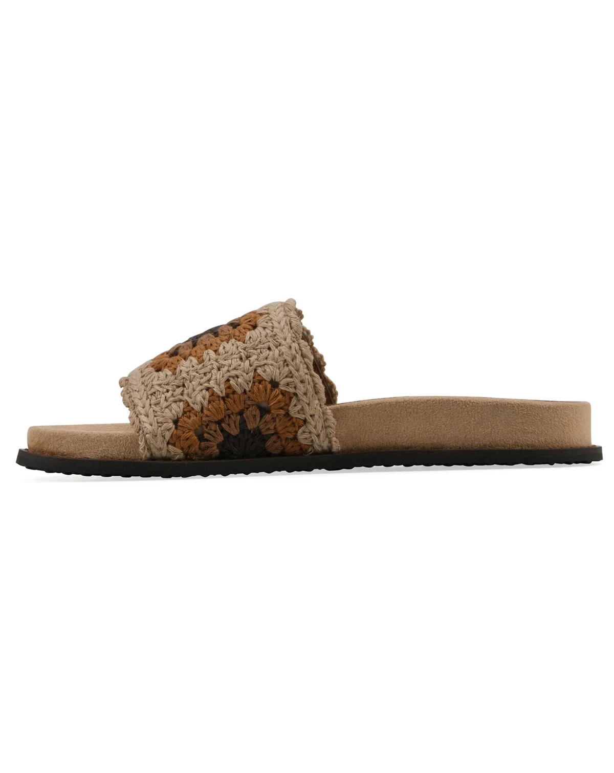Slide into the boho style Maxim macrame slide sandal from White Mountain Shoes. Featuring handwoven macrame uppers, these sandals offer an artisanal touch that's perfect for laid back summer days. The breathable design ensures comfort, while the molded footbed provides support your feet need.