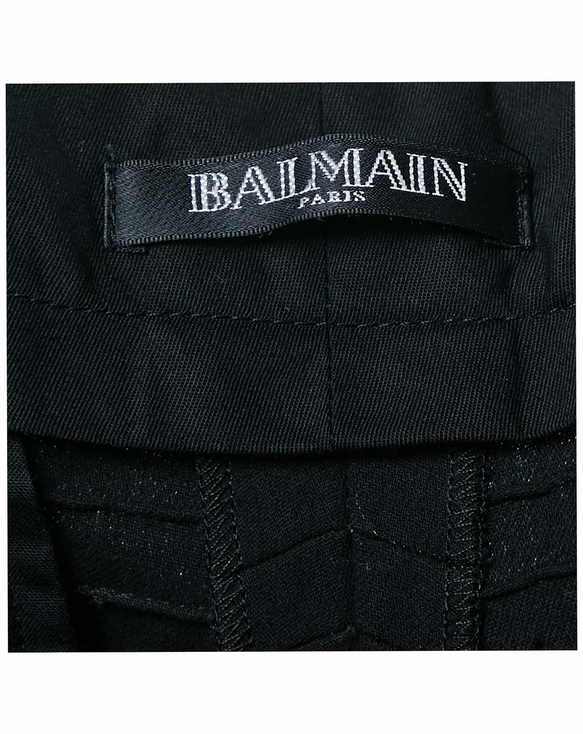 These black cotton trousers by Balmain are a sophisticated addition to any wardrobe. Designed with clean lines and a tailored fit they exude understated elegance perfect for pairing with crisp shirts or relaxed knits for versatile styling.