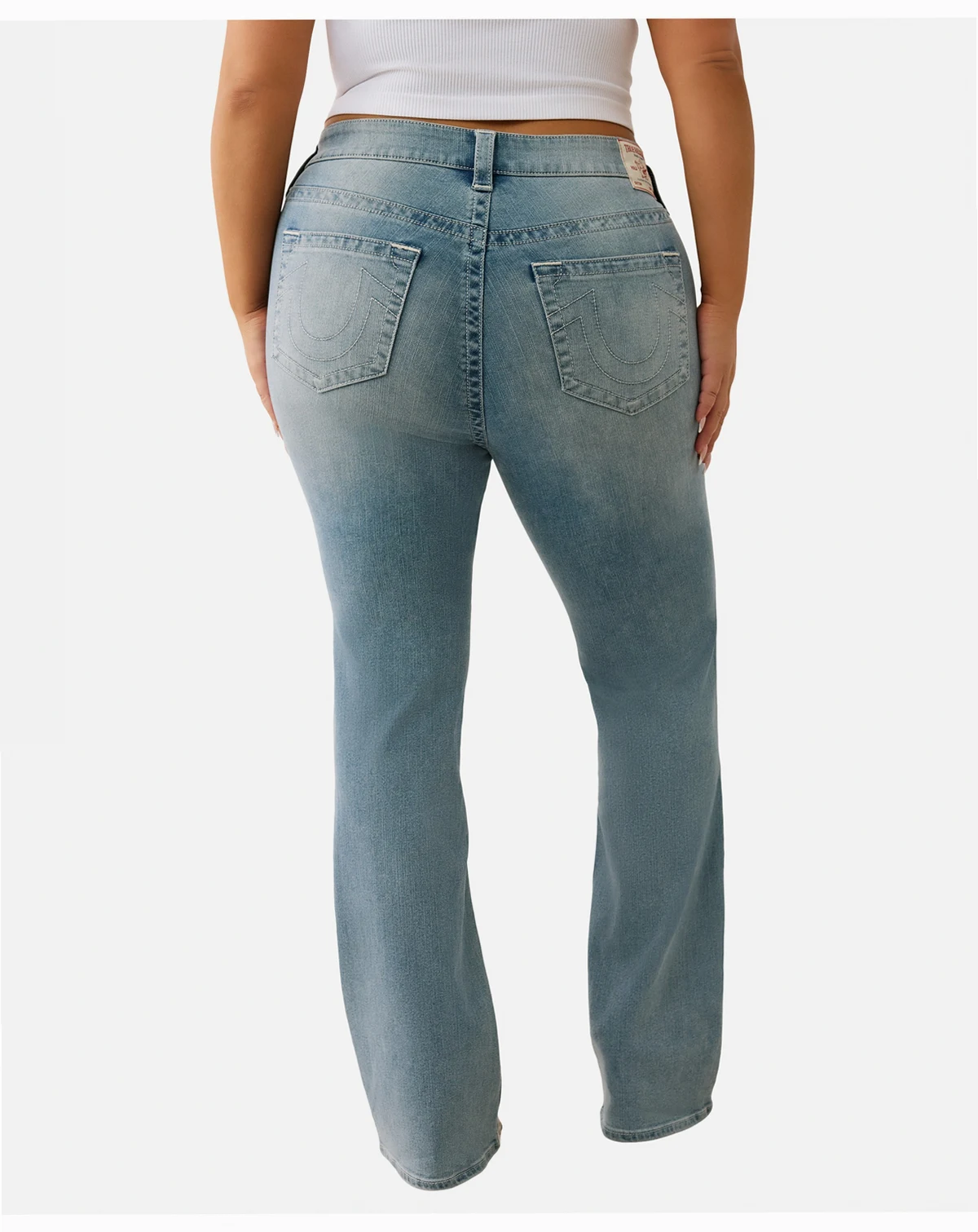 Meet the Plus Billie Mid Rise Straight Jean in a light wash, aka your new favorite denim. This pair of ultra-comfy jeans features a mid-rise waist, zip fly, whiskering, subtle fading, and single needle stitching. Finished with five pocket construction and horseshoe detailing on the back.