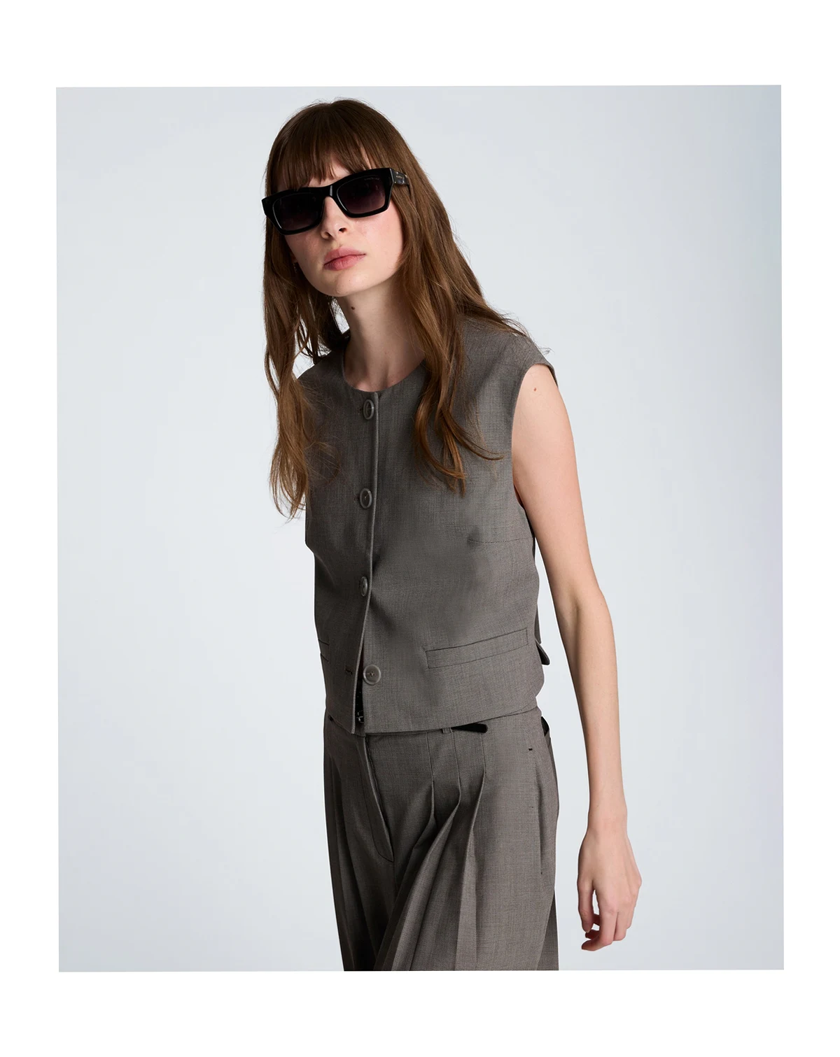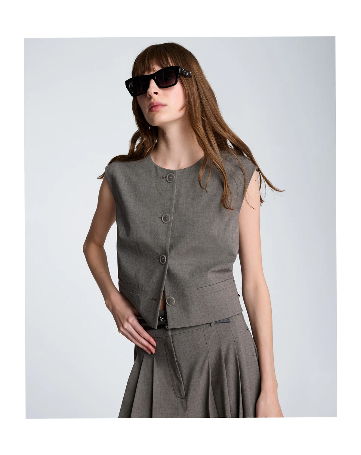 Layering gets a bold refresh with this cropped vest from Kenneth Cole. Featuring a button-front design and a sleeveless, boxy silhouette, it helps you make a modern style statement.