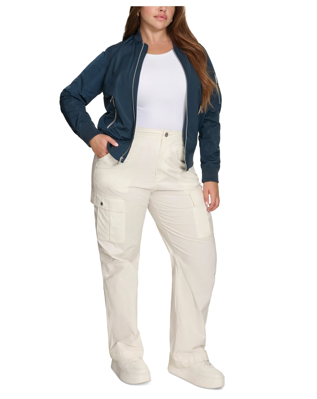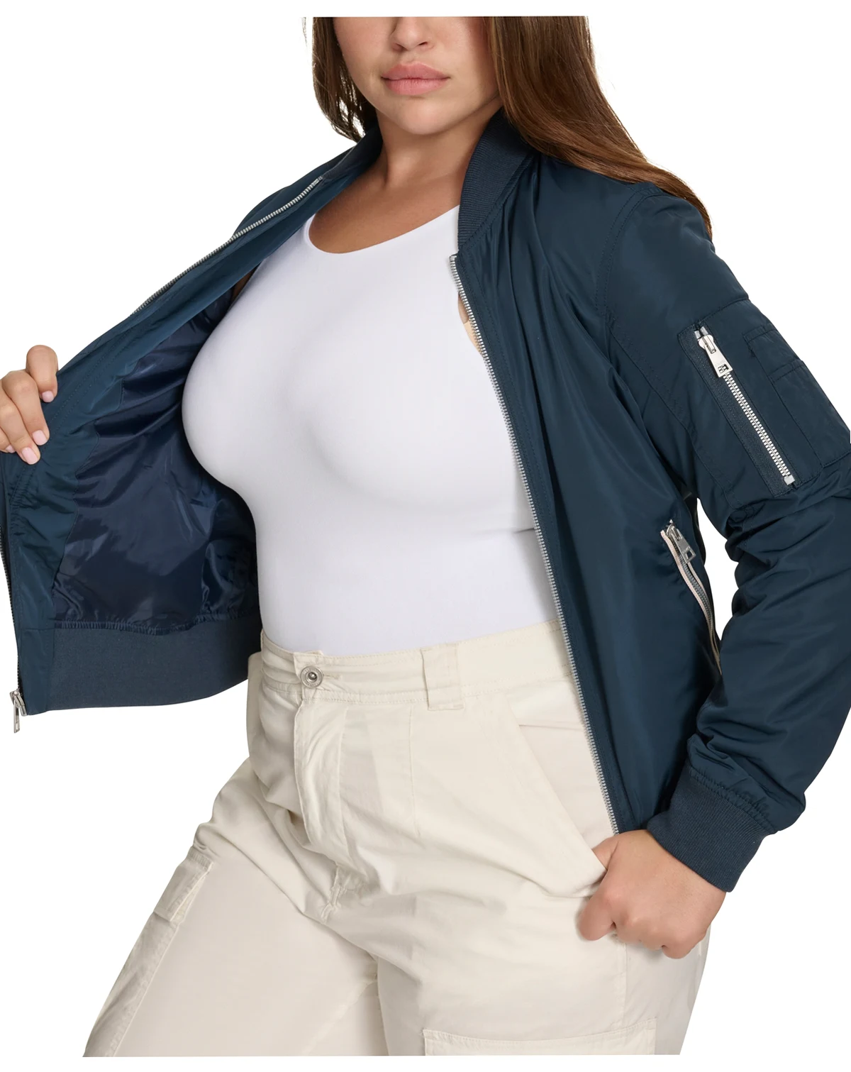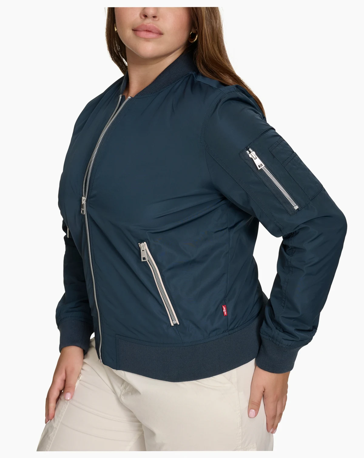 A classic part of any casual collection, this plus size bomber jacket from Levi's is updated with zip pockets for a fresh look. The hip-length coverage flatters.