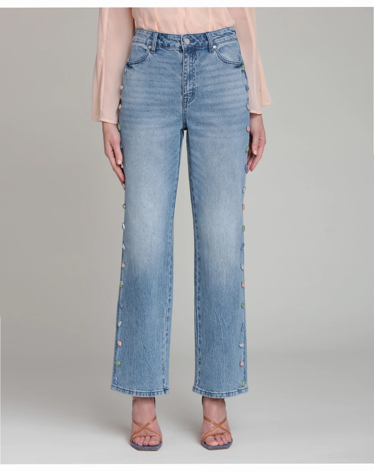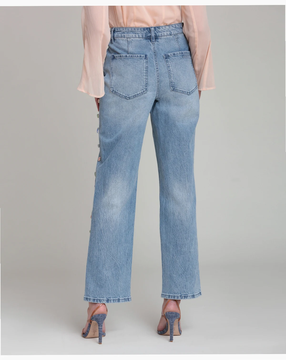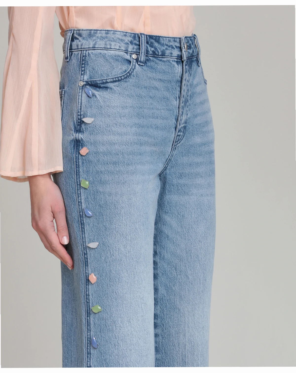 Decorative modernity shines with a front fly zipper and functional pockets on these Avec Les Filles pants with stone embellishments and a wide leg. The mid-rise delivers contemporary, decorated appeal.