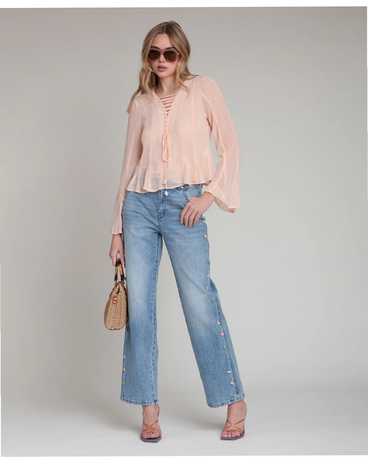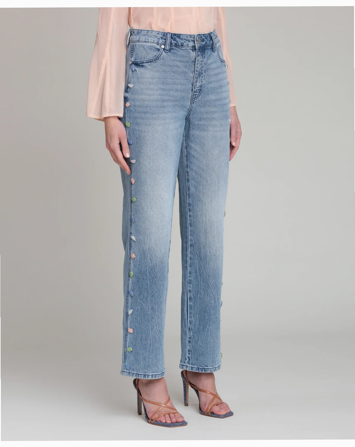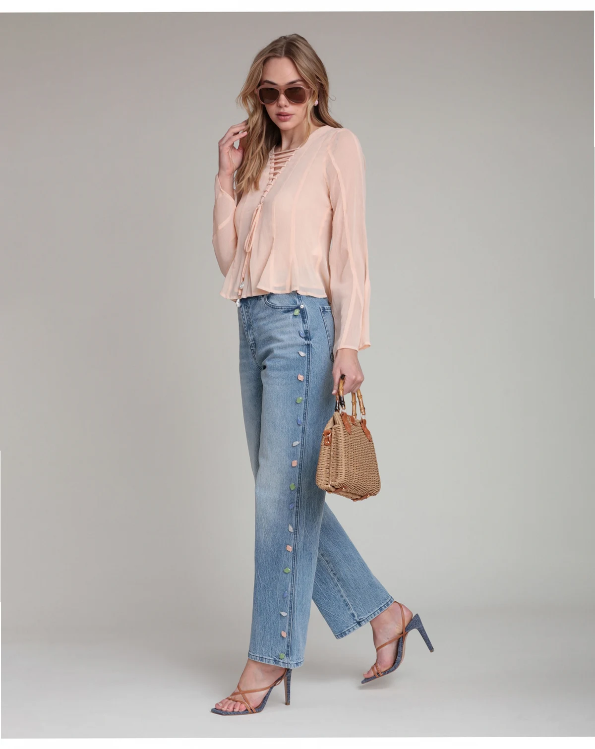 Decorative modernity shines with a front fly zipper and functional pockets on these Avec Les Filles pants with stone embellishments and a wide leg. The mid-rise delivers contemporary, decorated appeal.