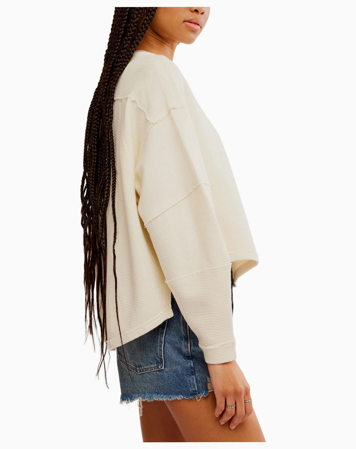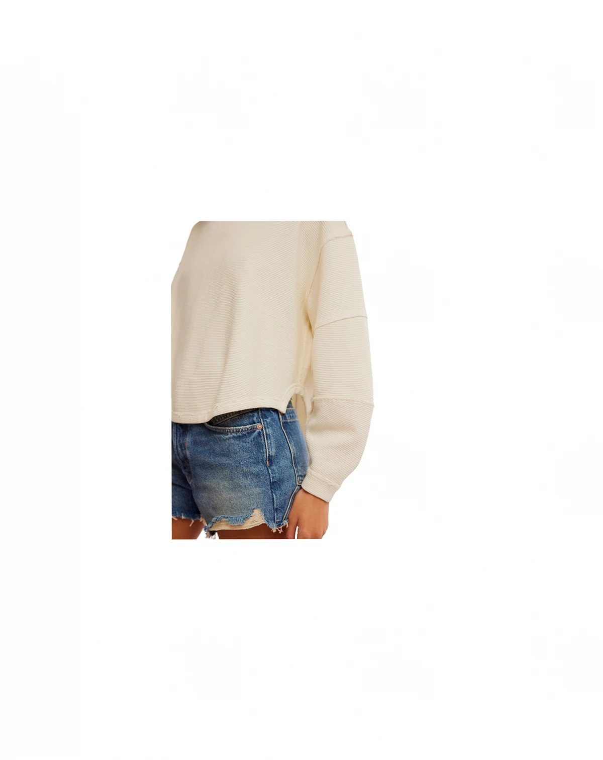 Get real relaxed and real chic real fast in this high-low top from Free People, finished in cotton comfort, this piece features a ribbed finish and a drop shoulder silhouette for a chilled-vibes style.