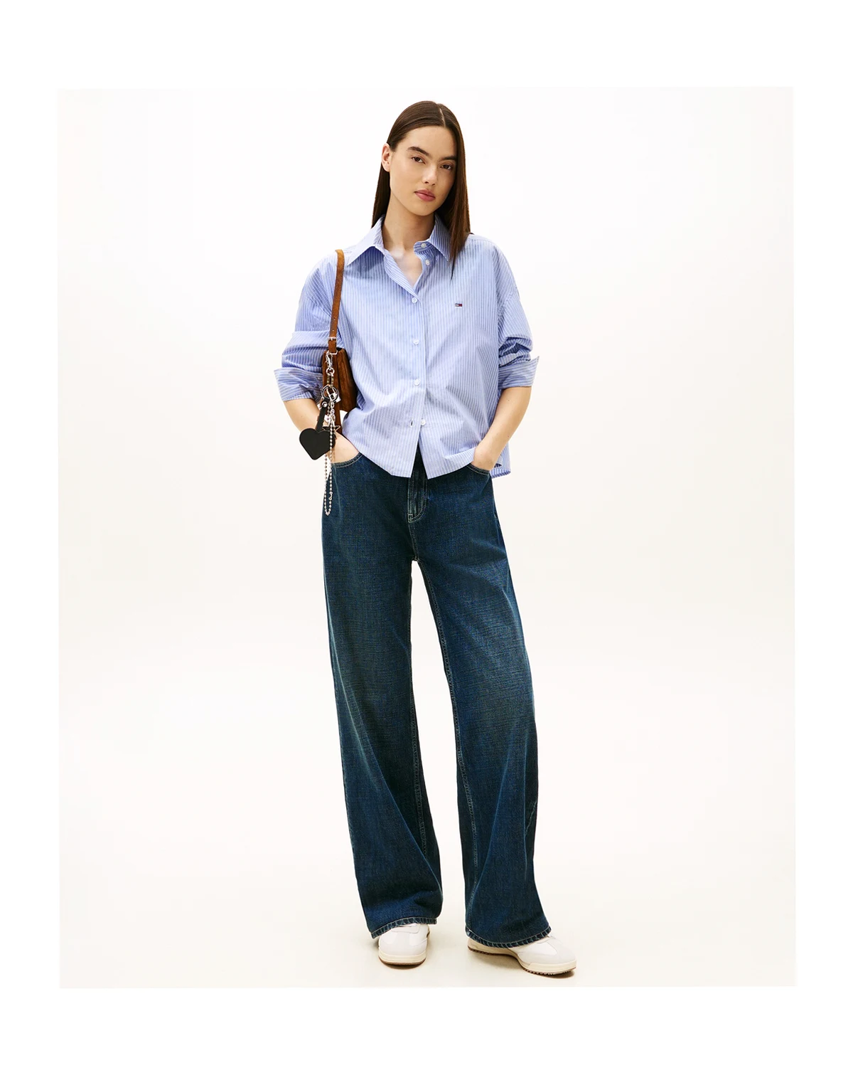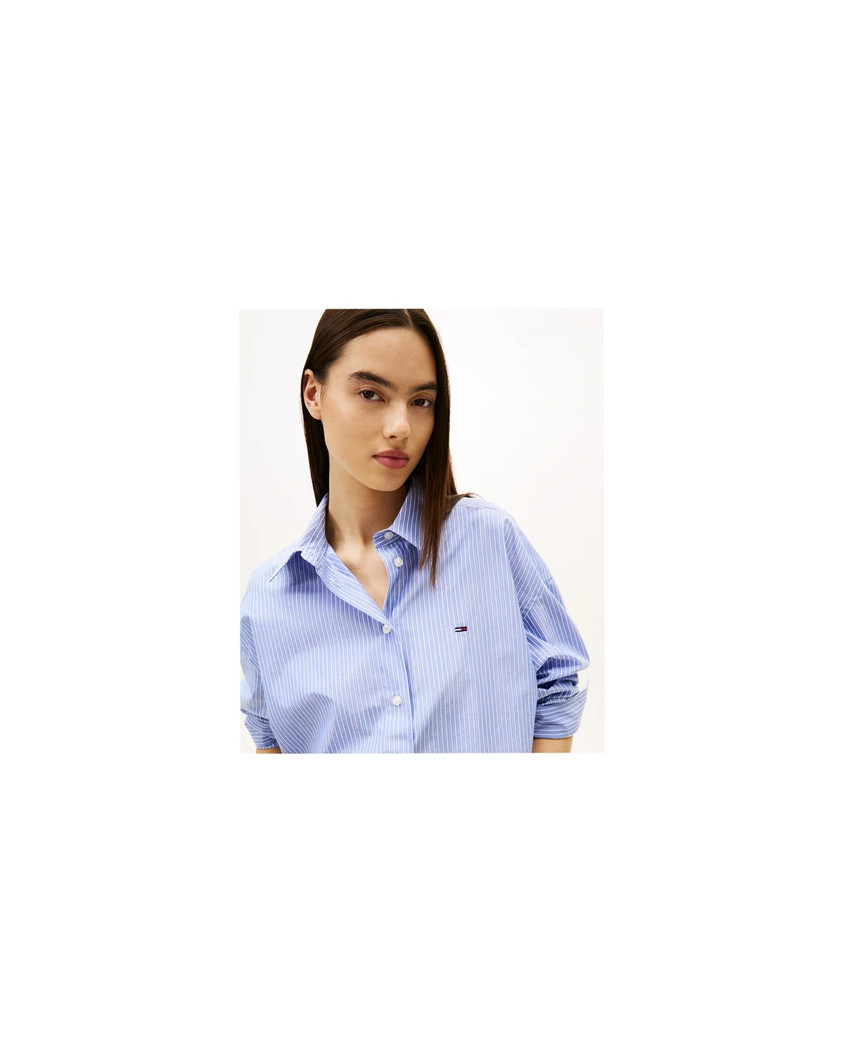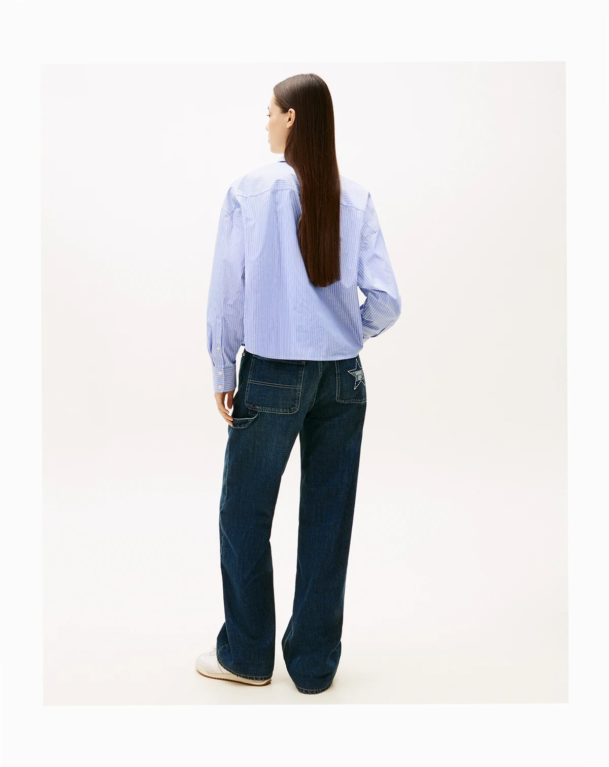 Making a festive statement, this Tommy Jeans party shirt features a cropped and oversized silhouette for a dramatic look. The collared neckline and long sleeves add a structured yet playful touch.
