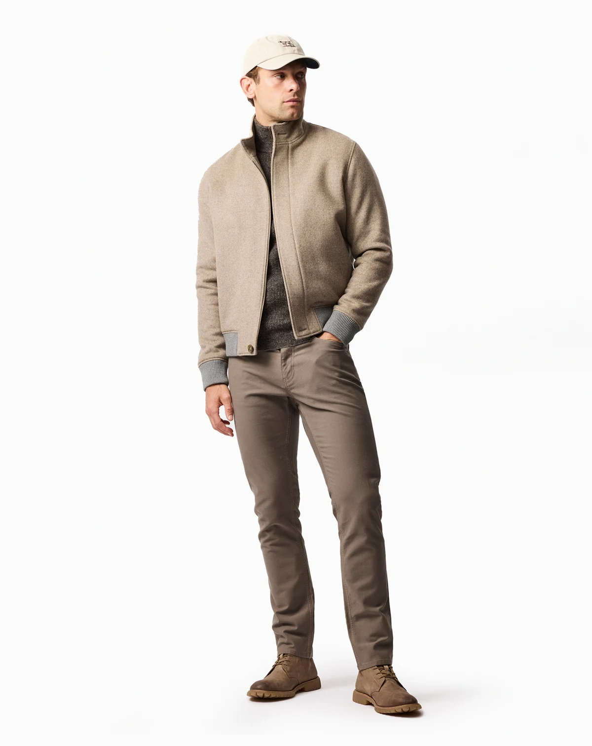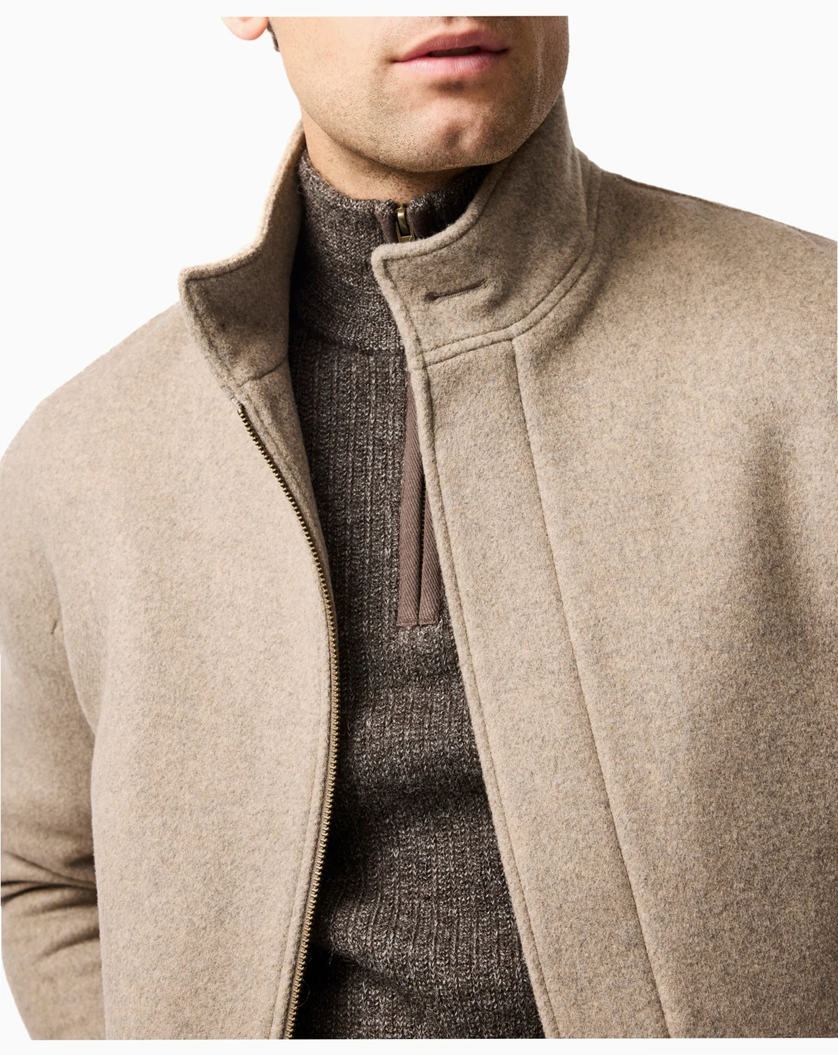 A timeless and modern silhouette cut from a fine blend of wool given new life, and wools spin and woven in Tuscany. Our Natural Wool Bomber is crafted from a blend of various natural fleece colors to create the distinct Fawn colorway this season. A versatile style for the cooler months.