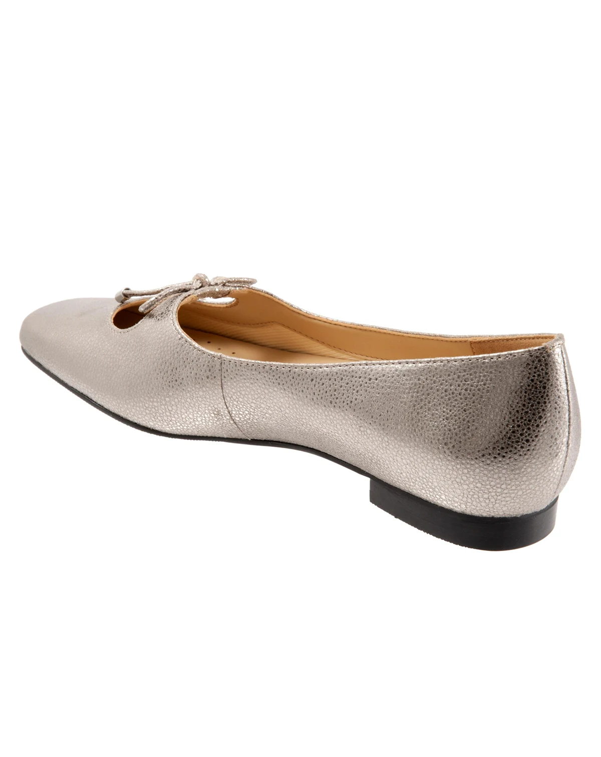 The Honesty flat adds a touch of class with a dainty bow atop a keyhole opening.