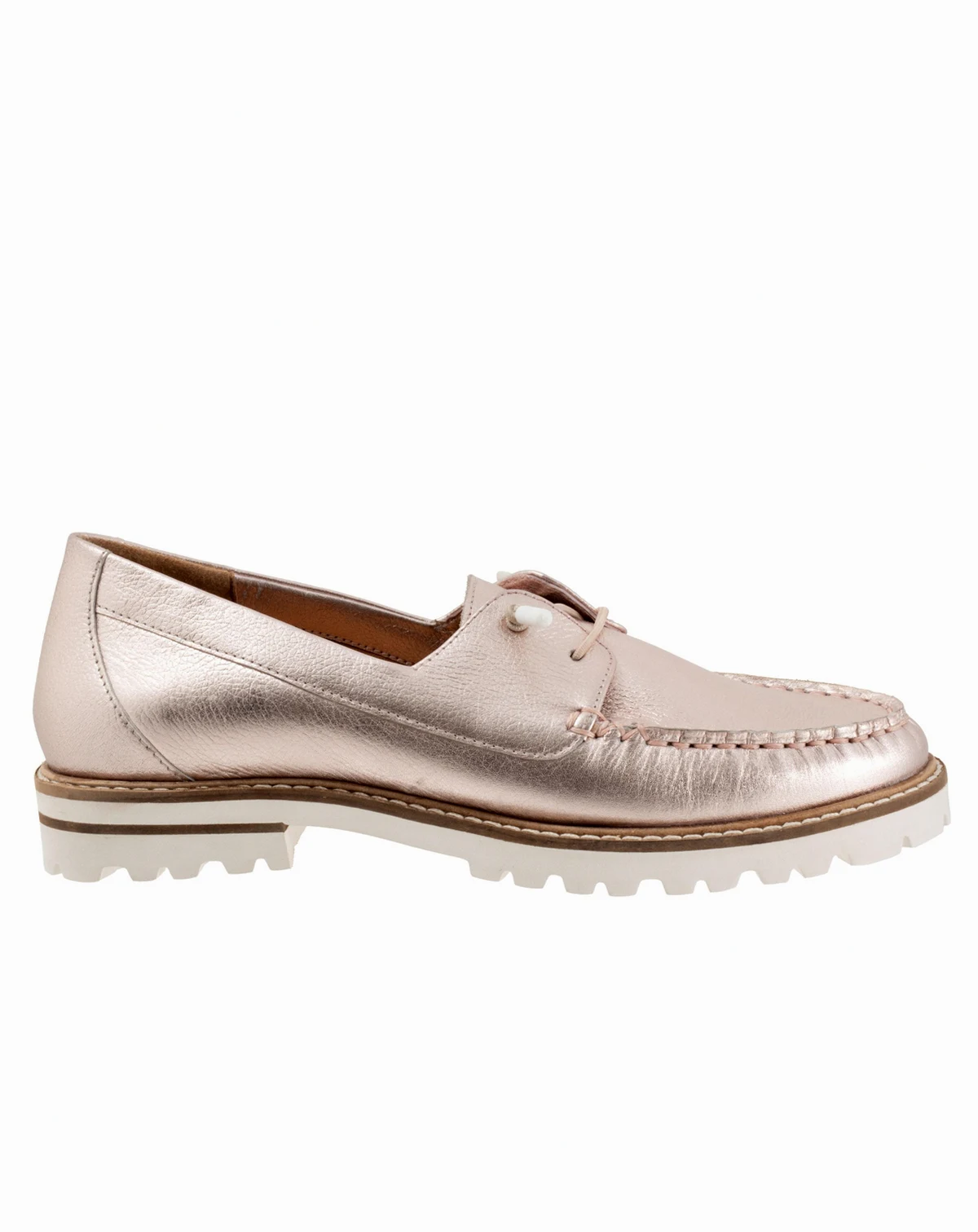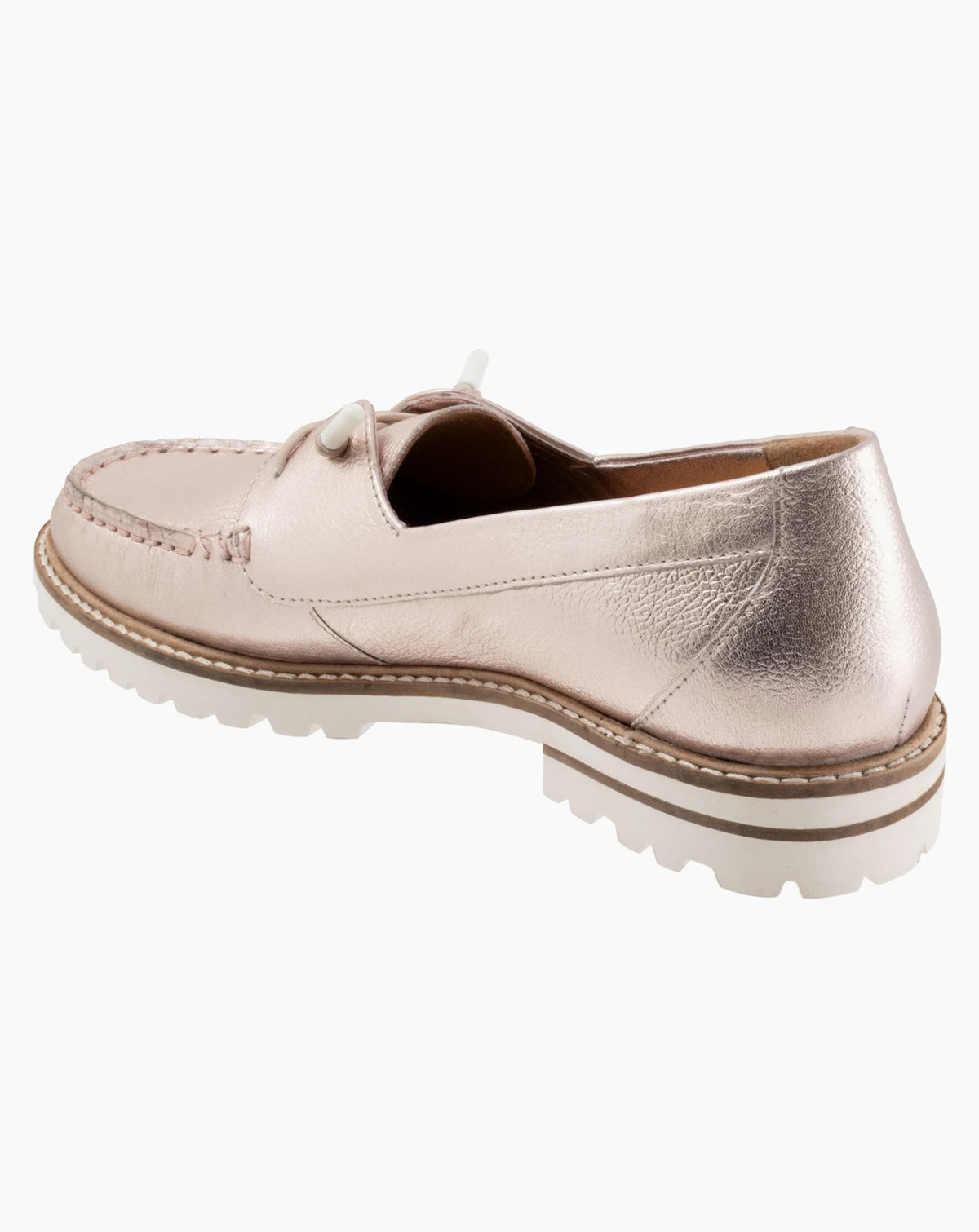 This Farah loafer has a unique upper stitching for a trendy design with a lace-up detail and a lugged sole for a comfortable everyday wear.