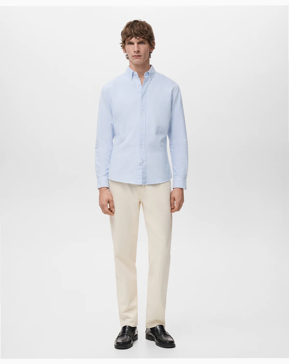 Approx. model height is 6' 1" and he is wearing a size M or EU 42 or US 32; Regular fit; See size chart above. Mango is based on EU sizing and has a slimmer fit than that of US sizing
