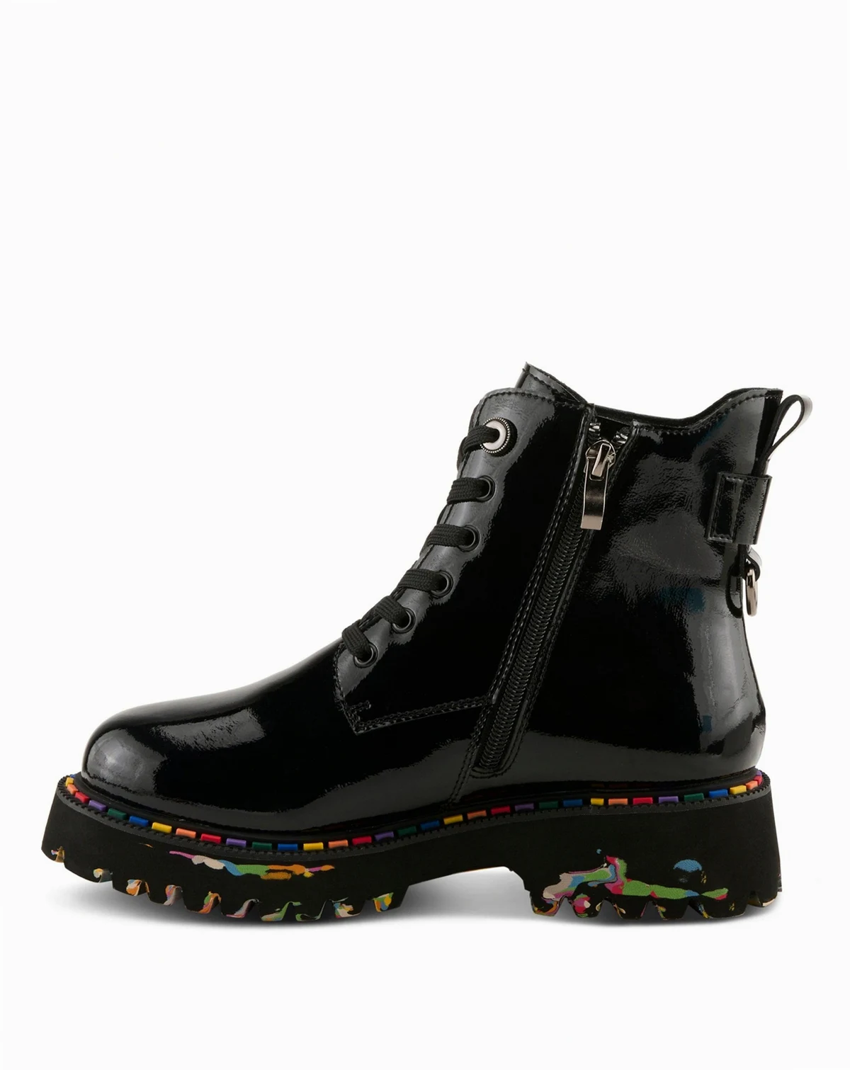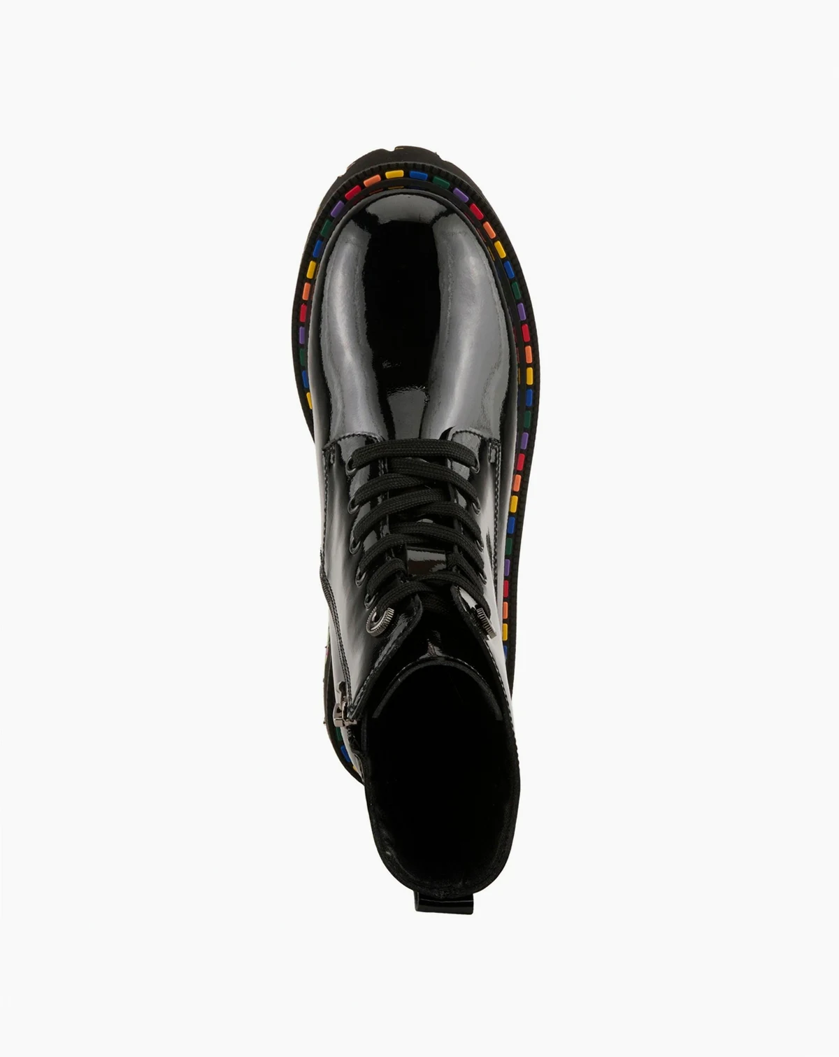 Make a splash in these playful waterproof rain boots designed to brighten even the dreariest days. Featuring a colorful artistic outsole, lace-up front for a secure fit, and a convenient side zipper, these boots combine bold style with practical waterproof protection and all-day comfort.