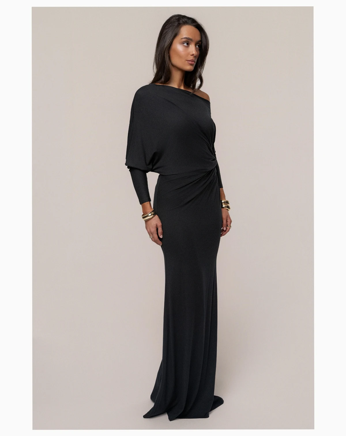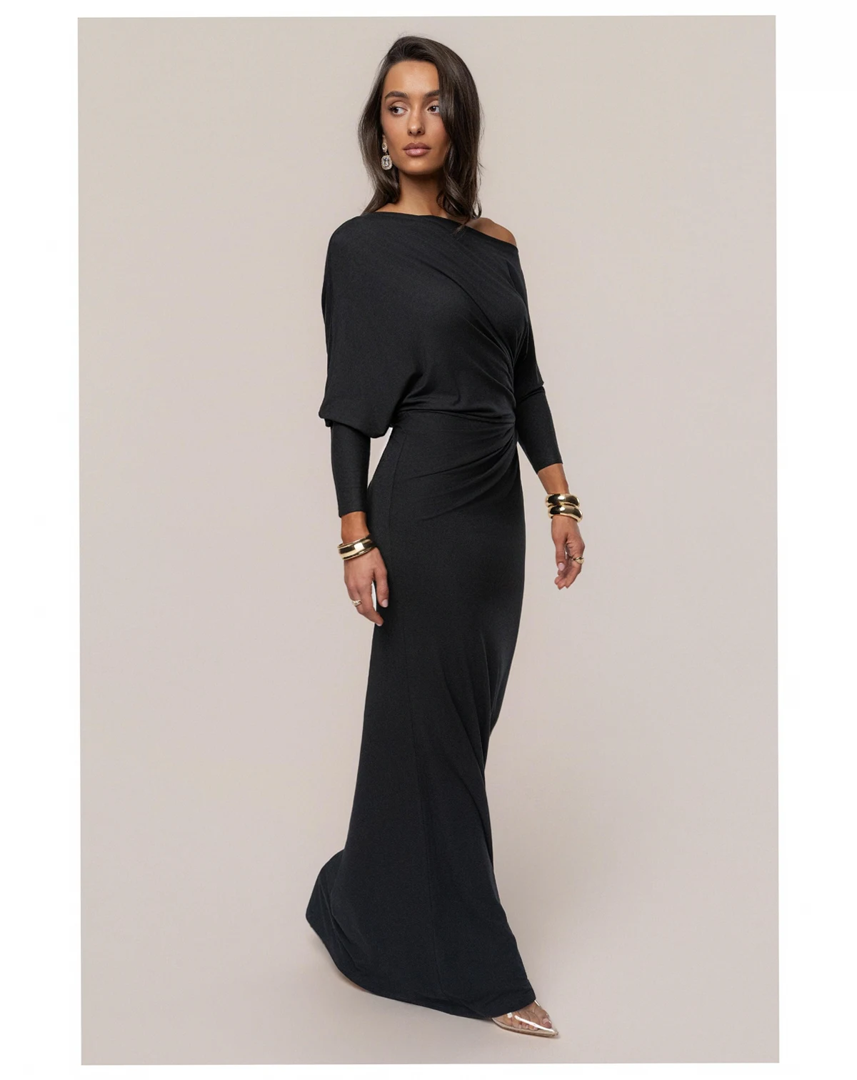Our Eternal Obsession Maxi Dress is a captivating blend of elegance and modern sophistication. This one-shoulder design in a earthy hue features a gracefully draped bodice and ruched detailing at the waist, creating a flattering silhouette. The long, fitted sleeves and maxi-length hem add a timeless touch, perfect for formal occasions.