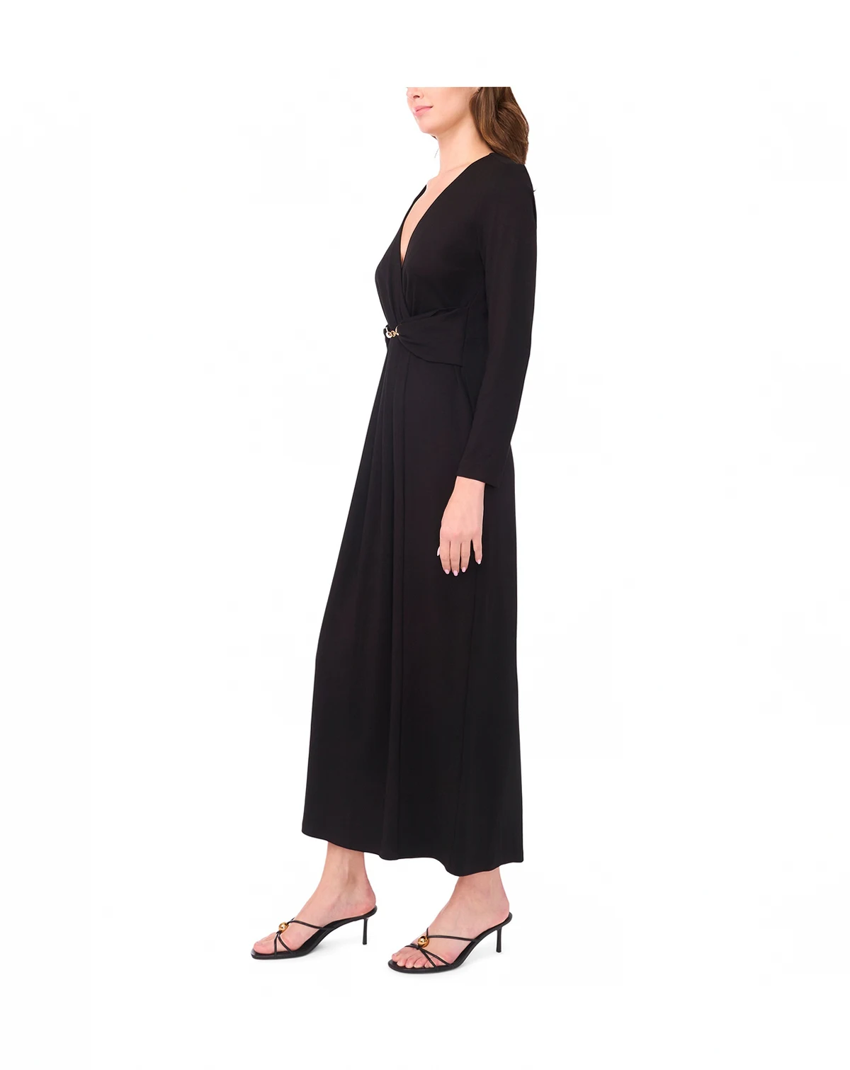 Women's Wrap Front with Clasp Trim Maxi Dress