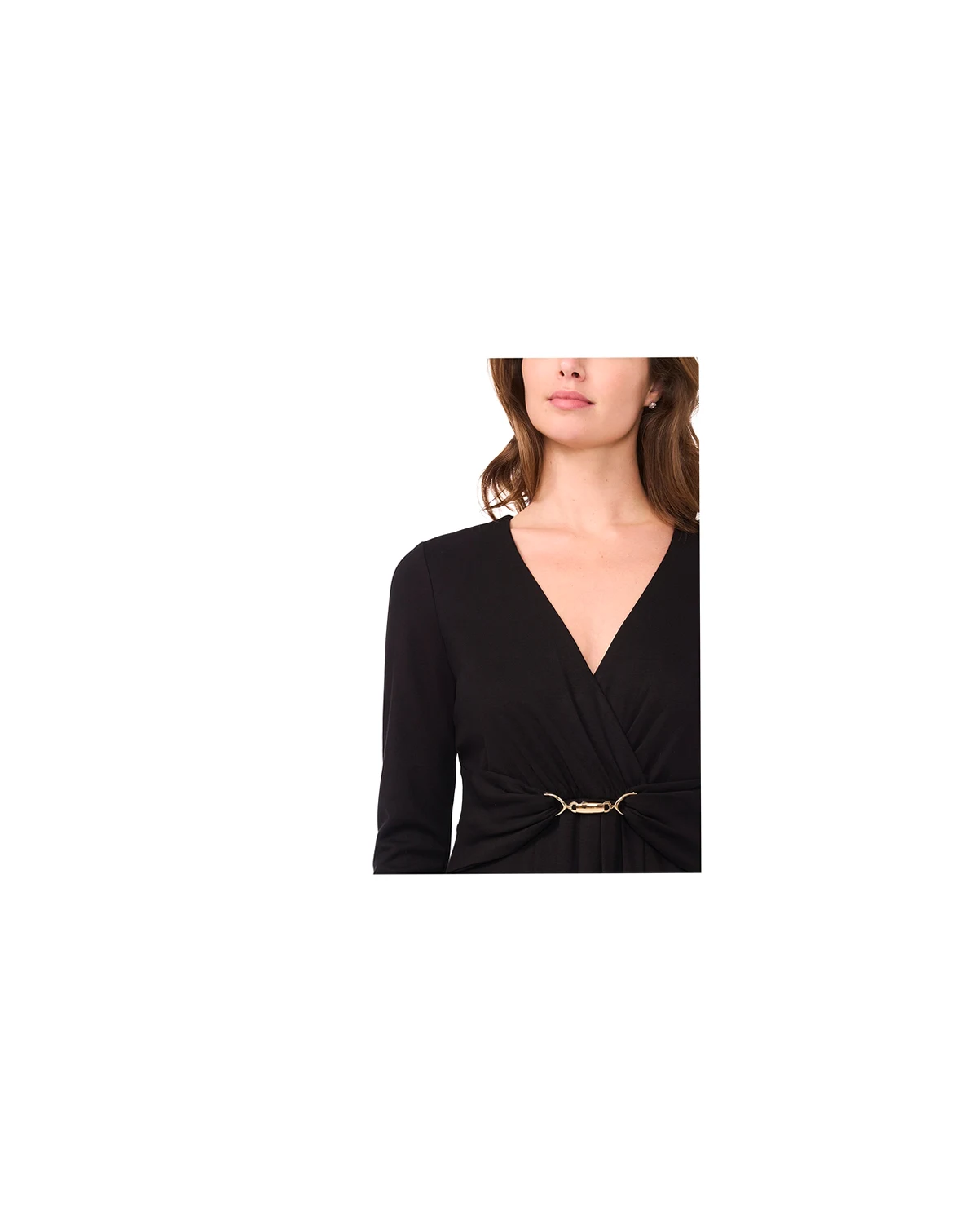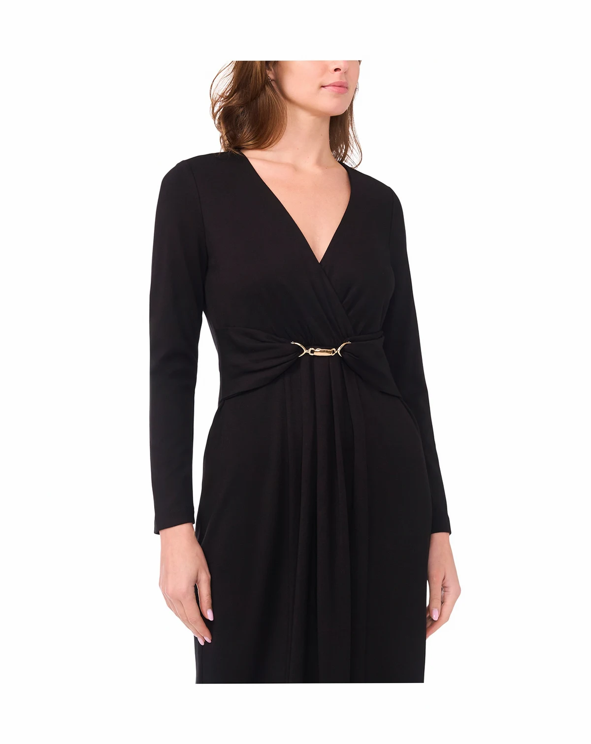 Embrace elegant draping with this MSK wrap front dress, designed with a secure clasp trim for a customized fit. The graceful v-neckline creates a flattering and sophisticated look.