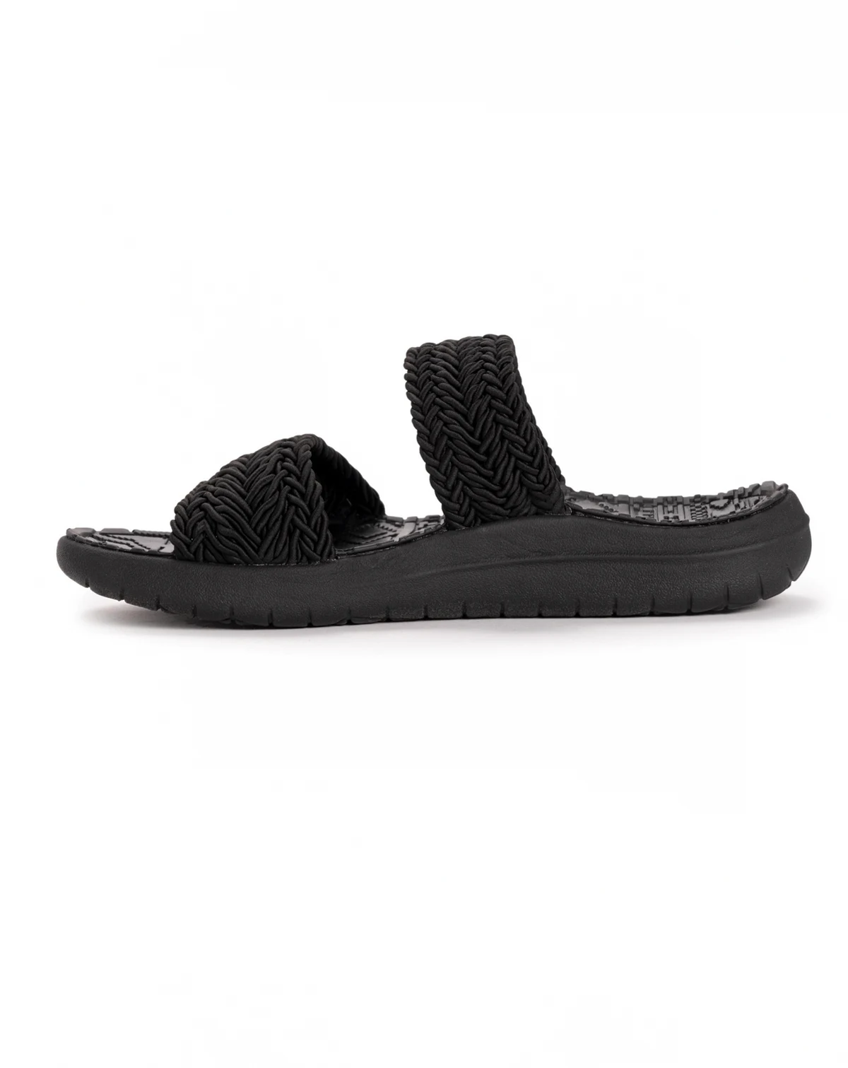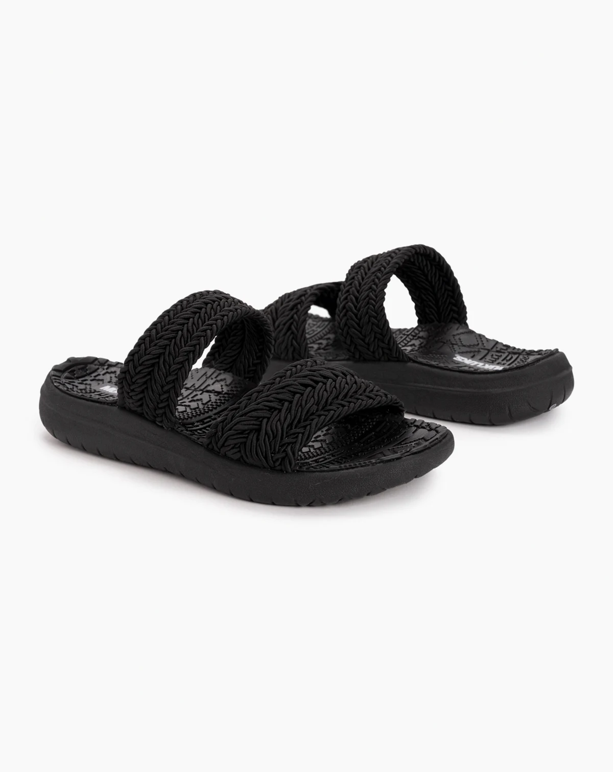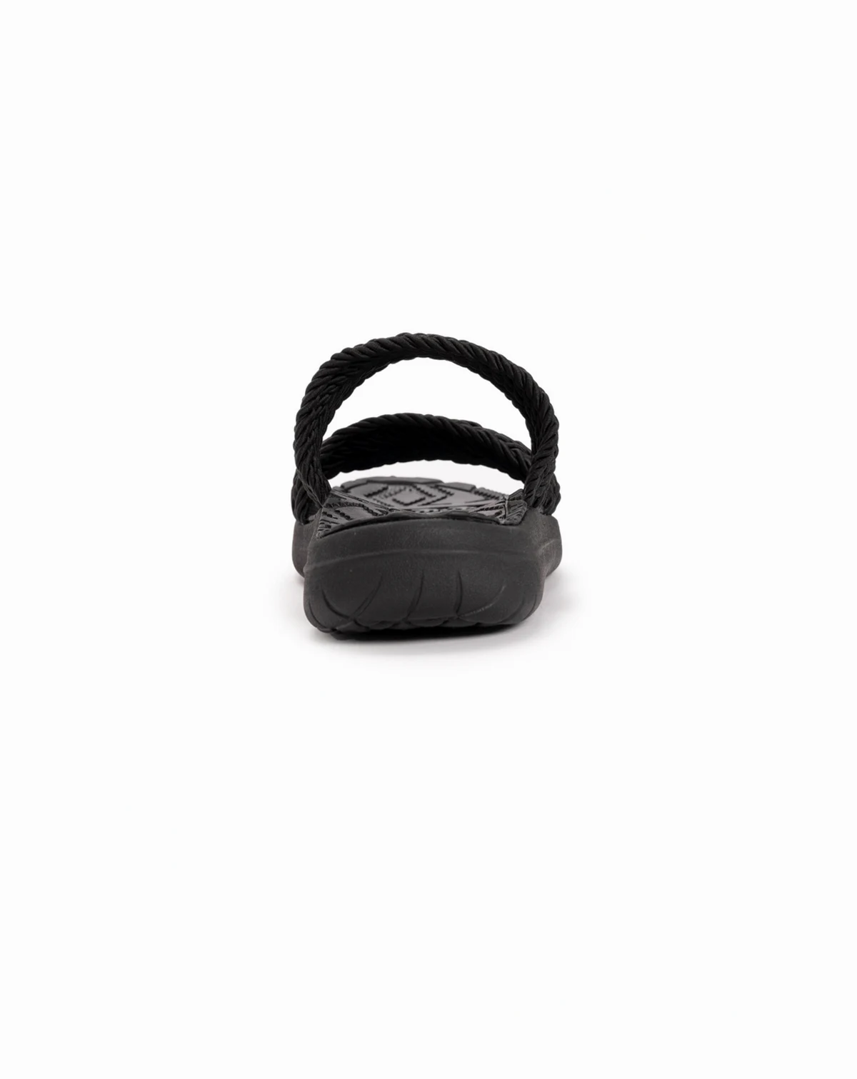 Elevate your summer footwear collection with Muk Luks Women's Stella 2 Strap Slide Sandal where style meets comfort. Elevate your summer footwear collection with these sandals, featuring a chic 2-strap braided upper, a fairisle embossed comfort footbed, and a lightweight, flexible sport outsole.