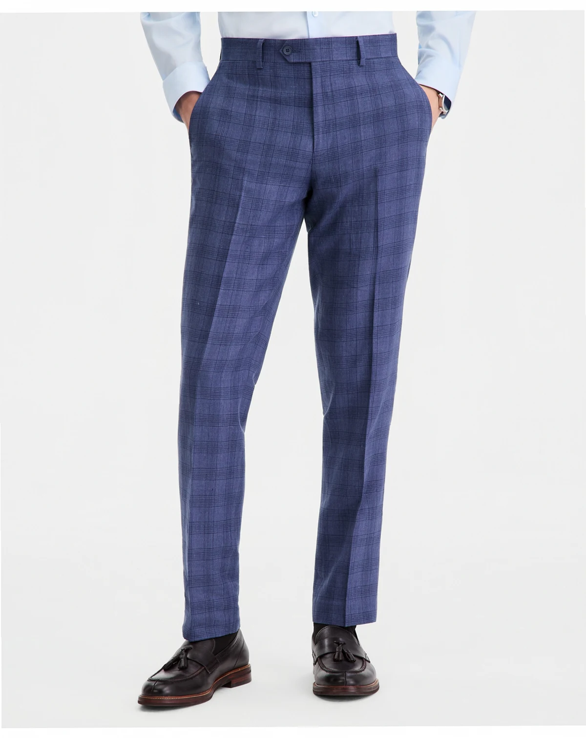 Men's Slim-Fit Plaid Linen-Blend Suit Separates Pants, Macy's Exclusive