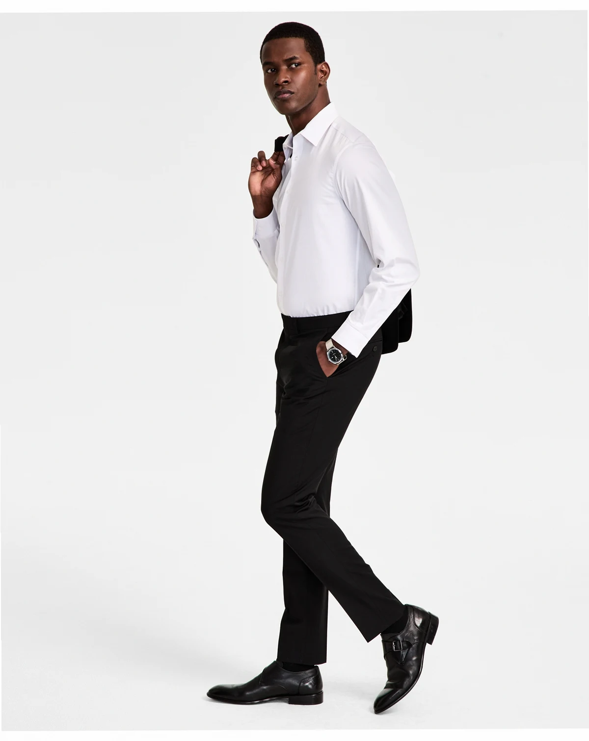 Skinny-fit and sleek, these wool-blend suit pants from Calvin Klein are here to help you cut a striking silhouette when it's time for your next formal event.