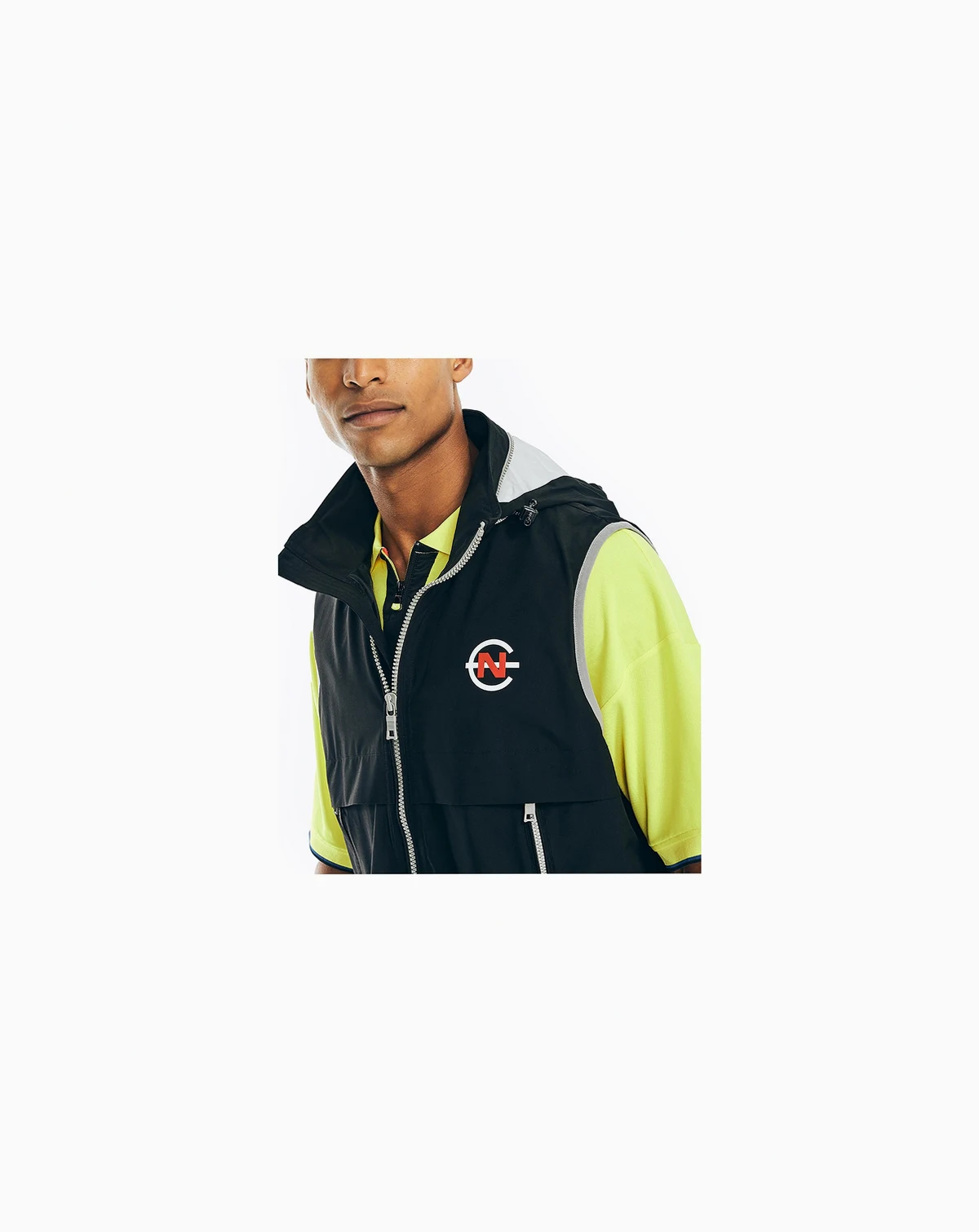 Made from water-resistant fabric that helps repel water, this vest is finished with a full-zip front, drawcord hem, multiple pockets, and Nautica's Competition logo at the chest.