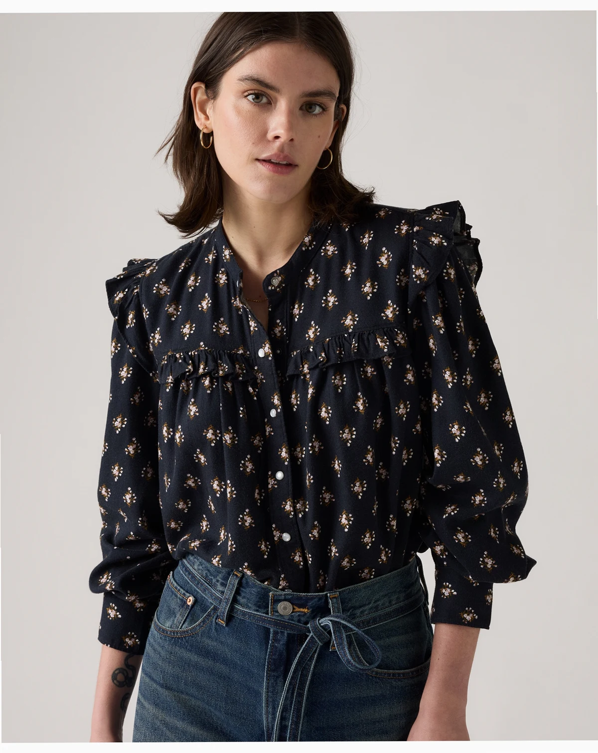 Combining a standard fit with timeless details, this Gianna blouse by Levi's adds a touch of sophistication to any outfit. The long-sleeve design features a collared neckline, subtle ruffle trim, and a classic button-up front.