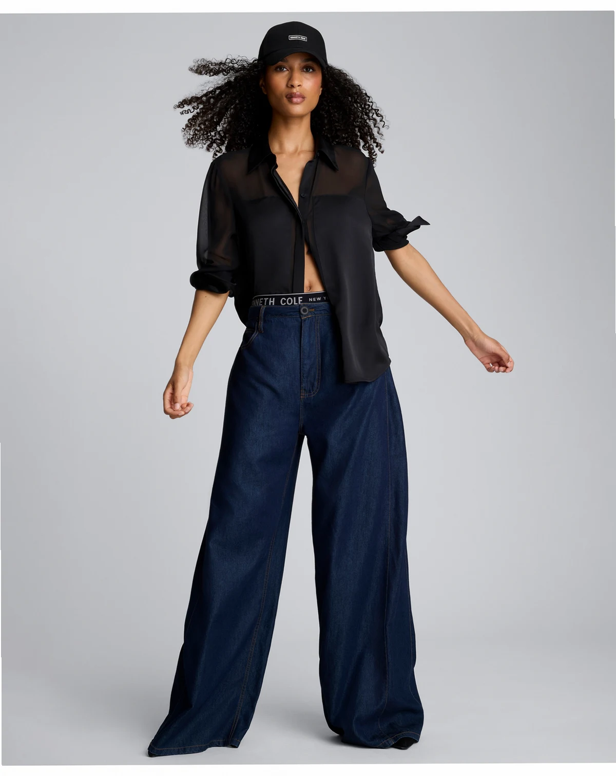 Bring timeless elegance to your wardrobe with this Kenneth Cole shirt, featuring a collar neckline. The button-front closure provides a sleek, streamlined fit.