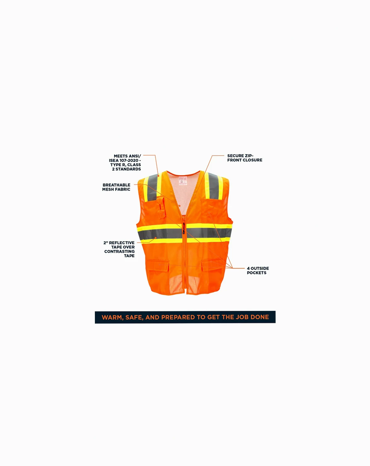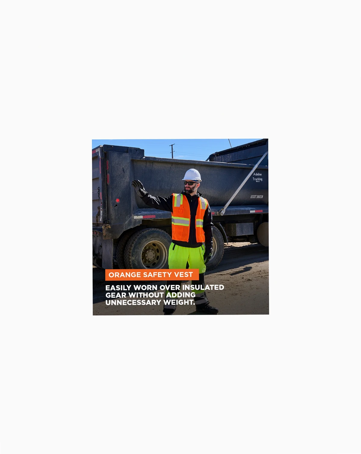 Safer than a chicken crossing the road, this Orange Safety Vest will keep you visible and protected, no matter the job at hand. It's not just a bright sight, but a powerful shield that ensures you stay seen in any worksite scenario.