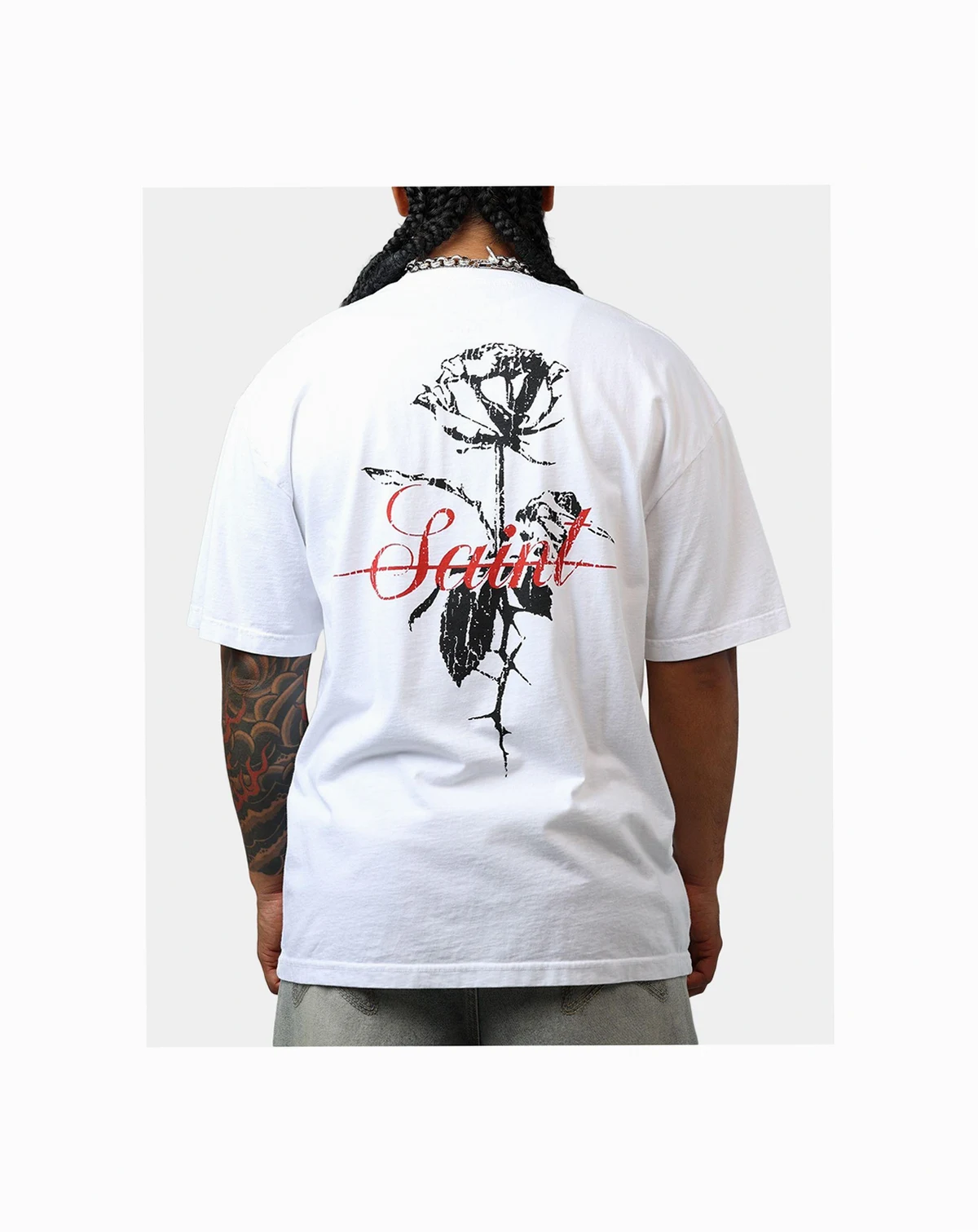 Elevate your everyday looks with the Saint Morta St Valentine boxy tee. Printed graphics, dropped shoulders and twin-needle stitching makes this piece a wardrobe essential that you won't want to go a day without.
