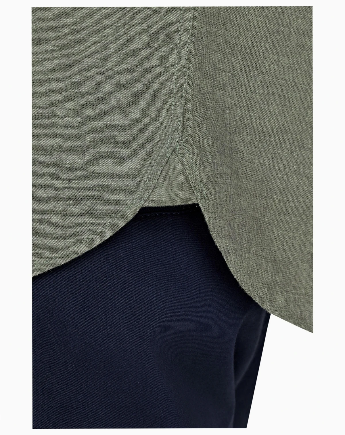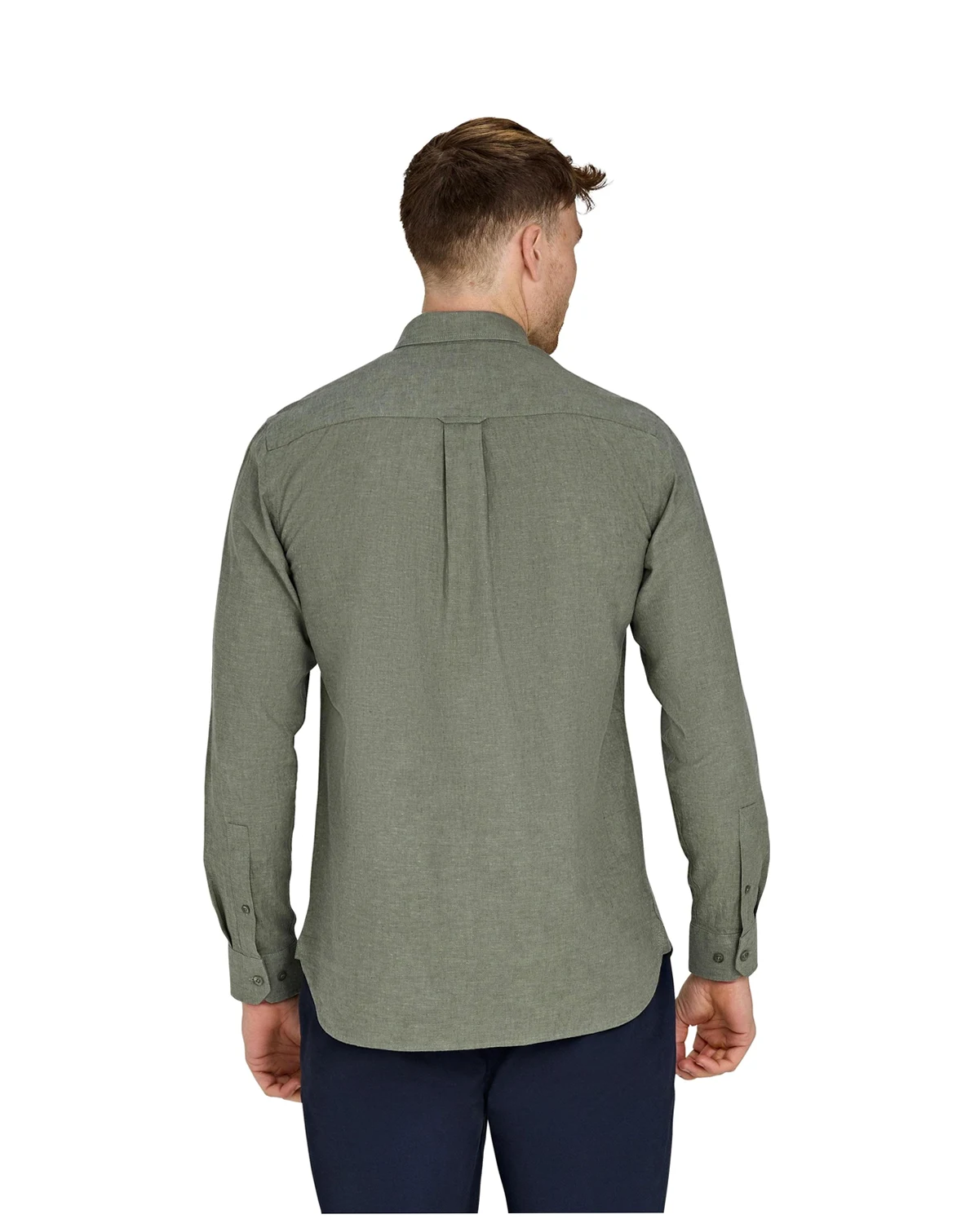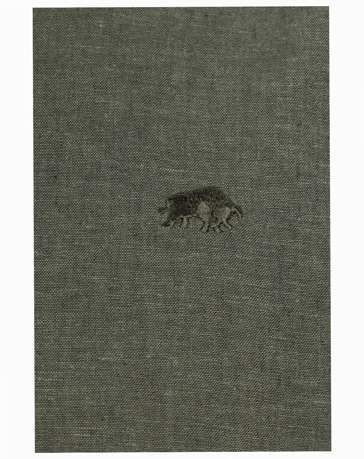 This men's premium linen cotton blend shirt in olive green is tailored to provide a classic, stylish, and smart or casual look. Its lightweight and breathable fabric offers comfort and durability, perfect for any occasion. With buttoned cuffs and a buttoned collar, this full length button up shirt exudes quality and longevity. Machine washable for convenience, it features an embroidered Raging Bull logo on the chest for a touch of sophistication.