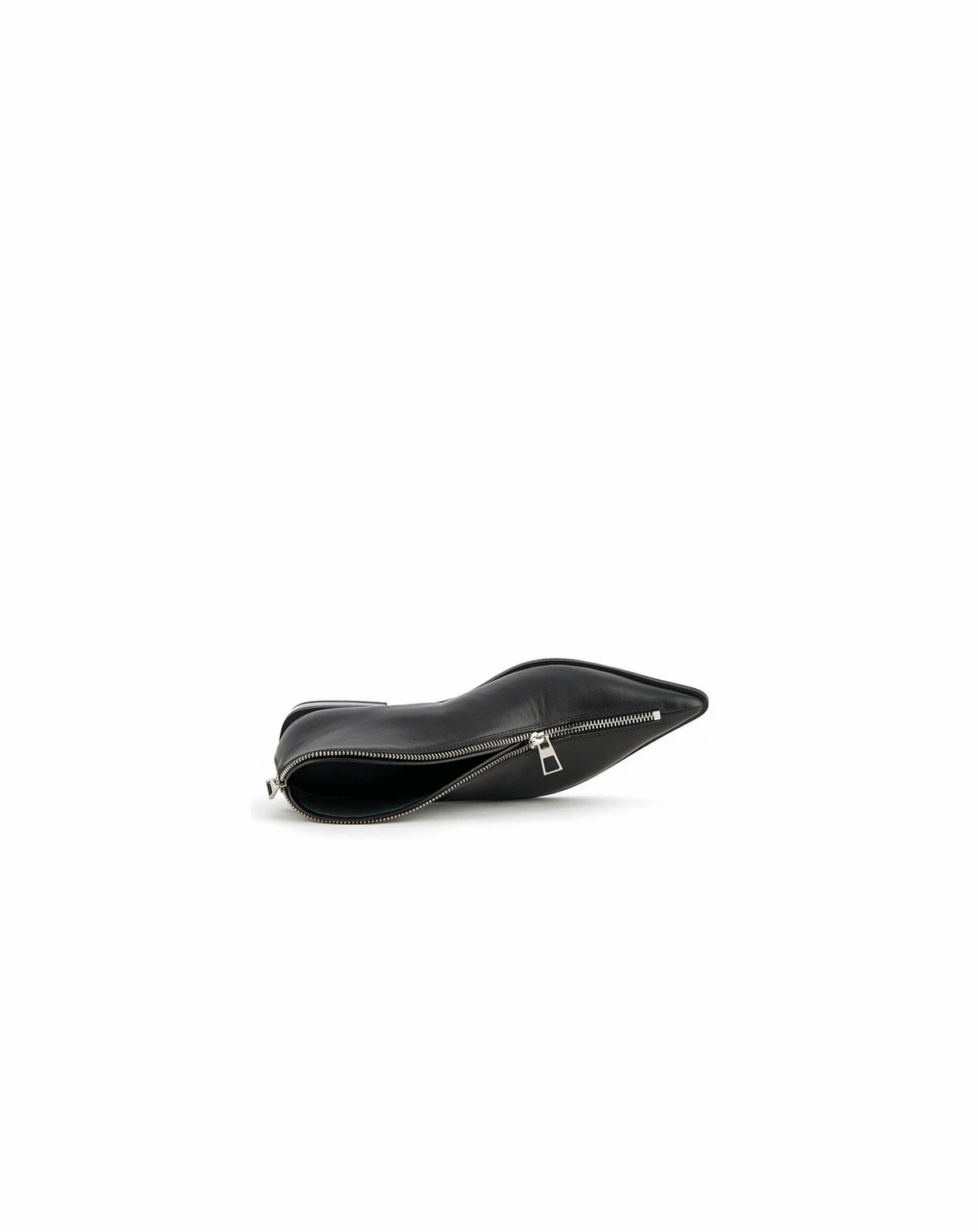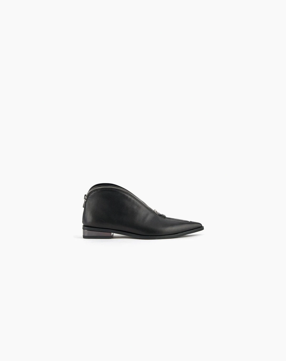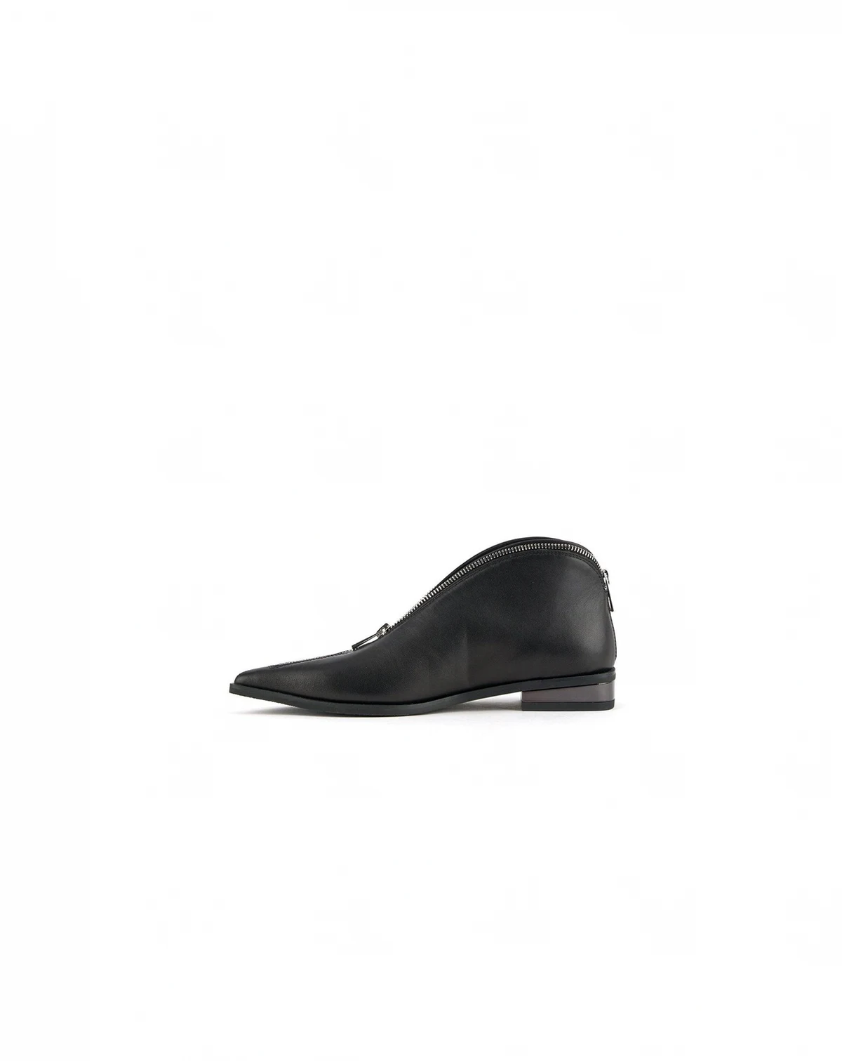 The Stacy Lo is a sleek low-profile bootie with a sharp, pointed toe and a sleek leather upper with a fully functional zipper at the topline.