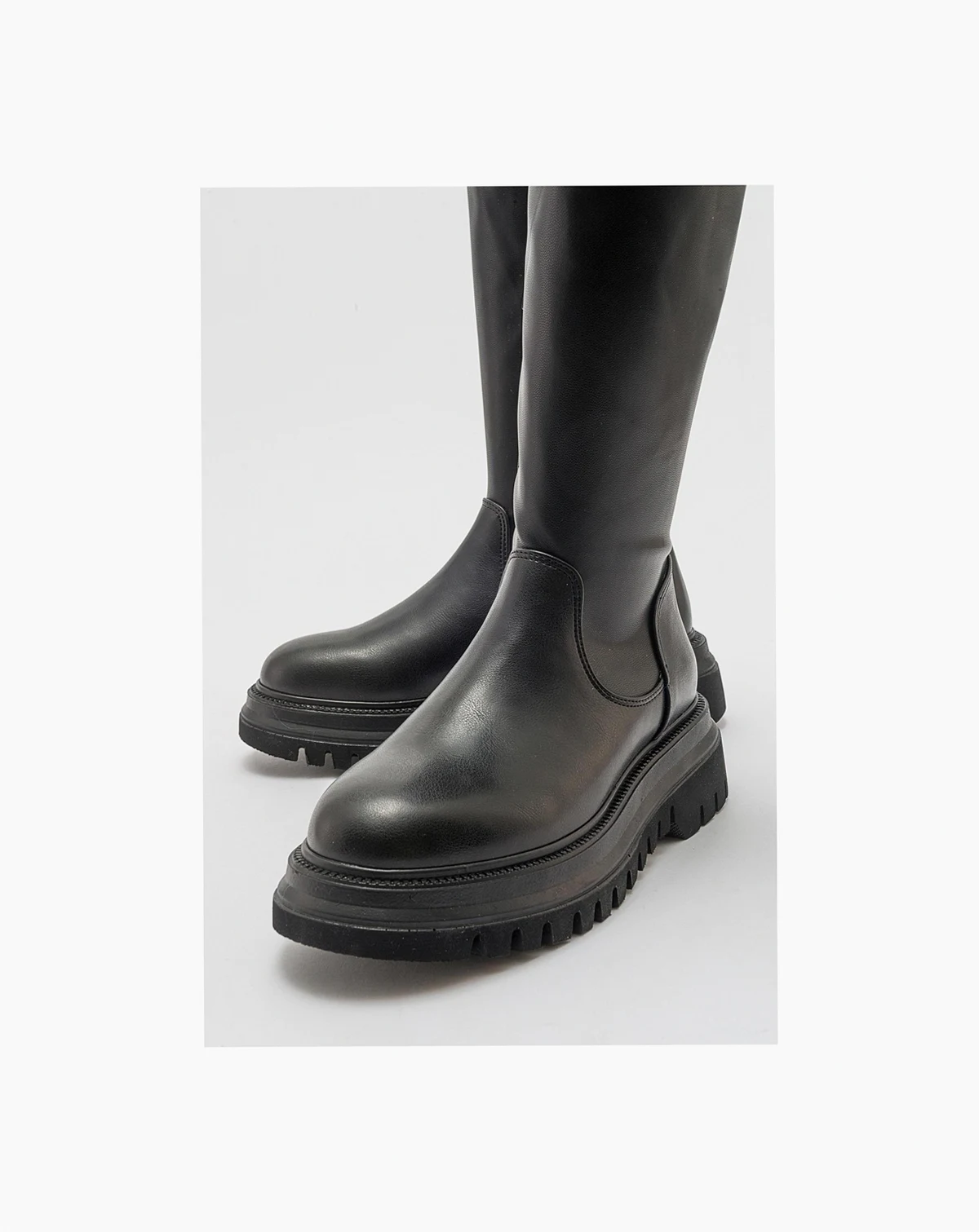 A sleek stretch boot crafted for a streamlined silhouette and all-day comfort