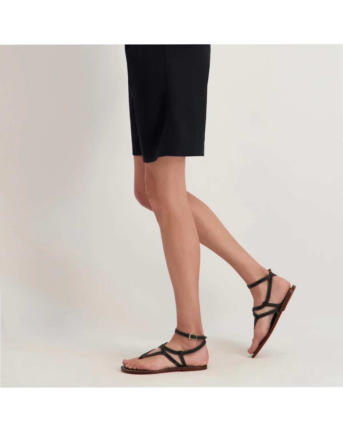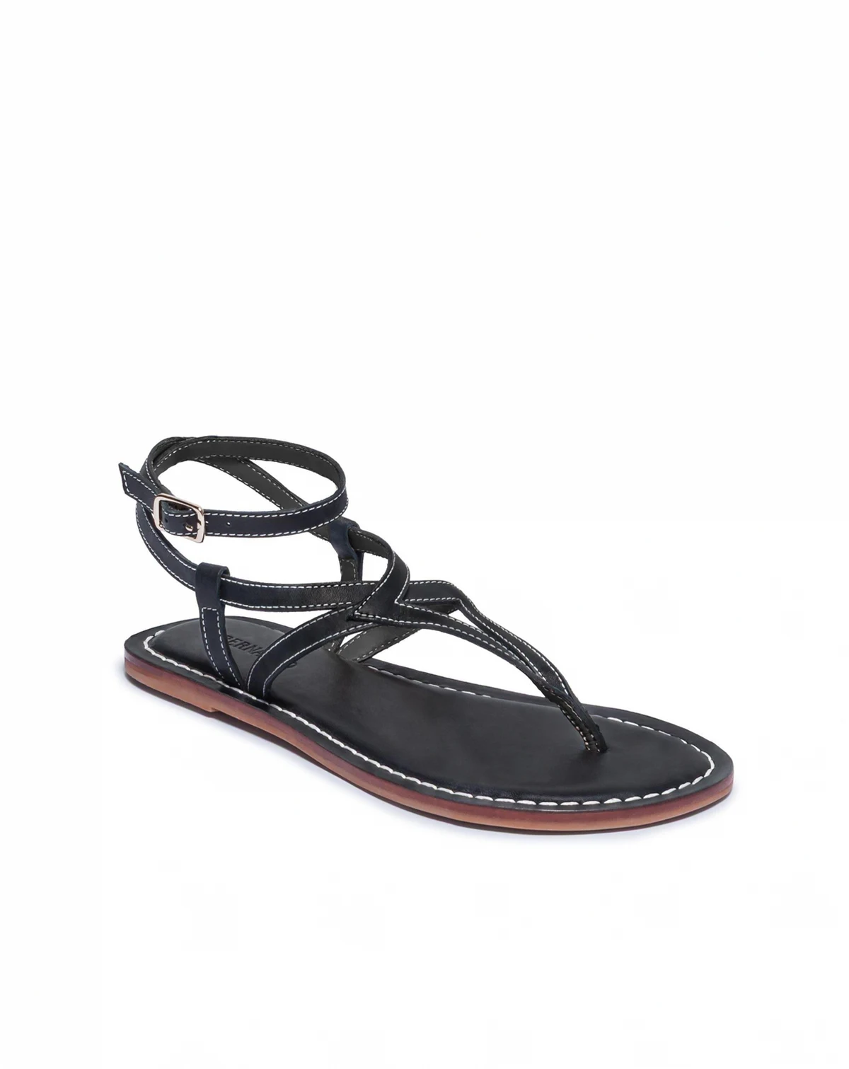 Tried and True. Bringing back this strappy archival design to adorn your feet. With a geometric cut thong upper and a wrap around ankle strap, your summer stride has style secured.