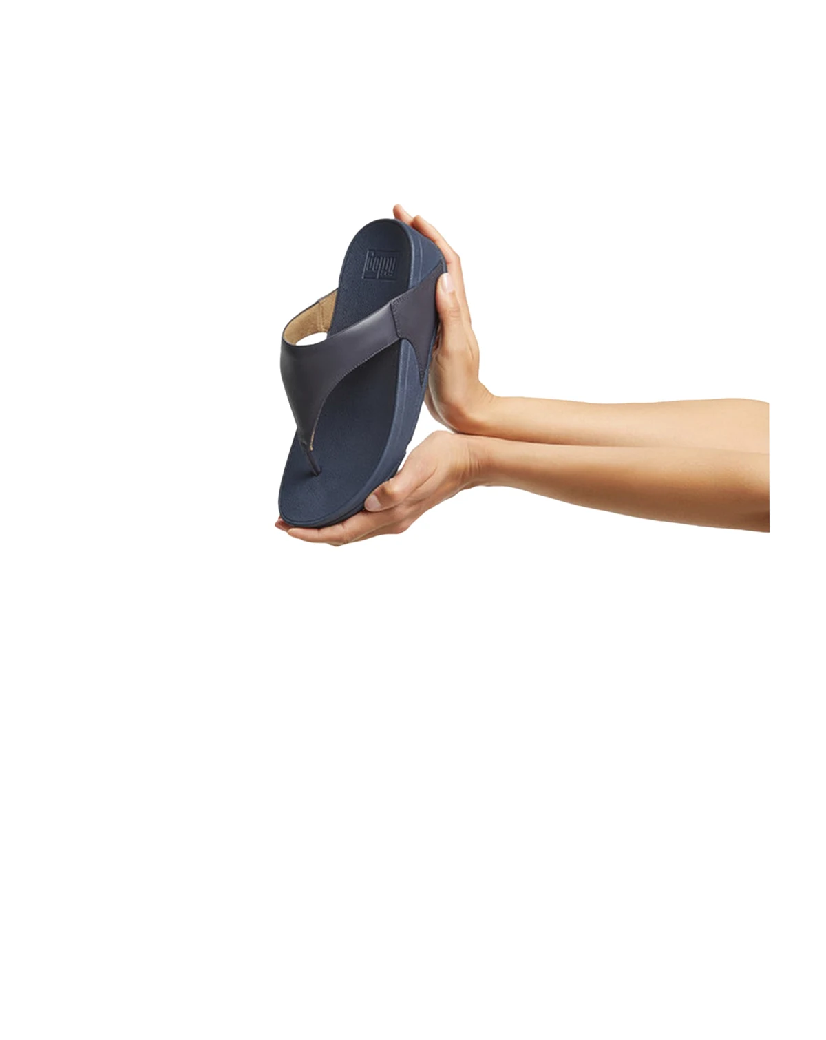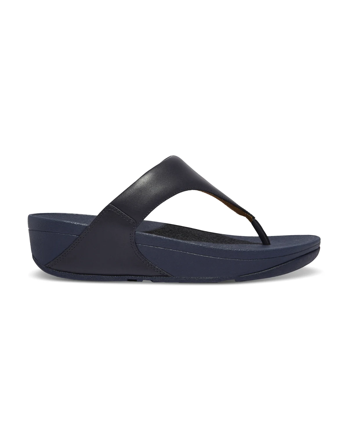 An understated silhouette and sleek leather merge in the effortless T-strap design of the Lulu platform wedges by FitFlop.